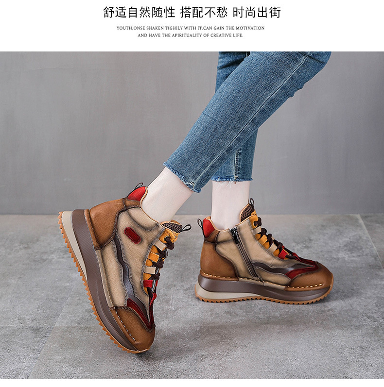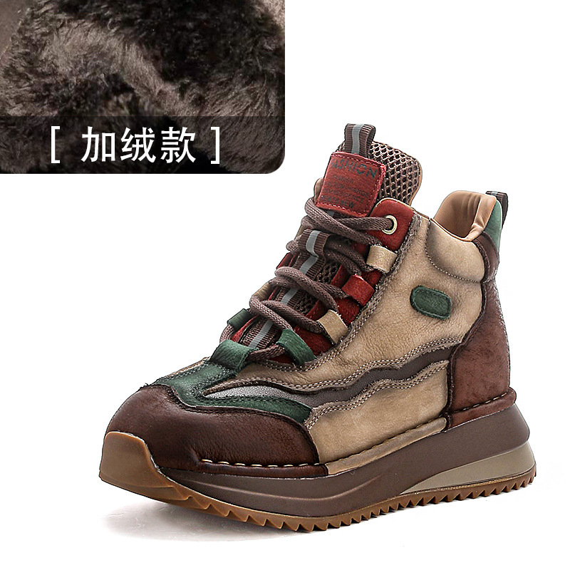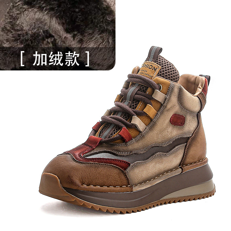 가을과 겨울 새로운 1 층 소 가죽 하이탑 신발 여성용 아버지 신발 정품 가죽 기모 마틴 부츠 짧은 캐주얼 스포츠 여성 신발
