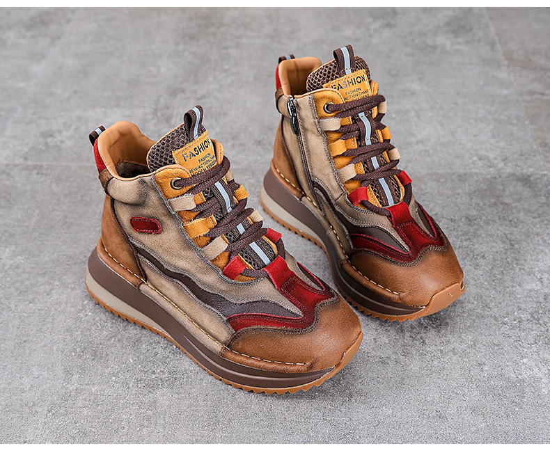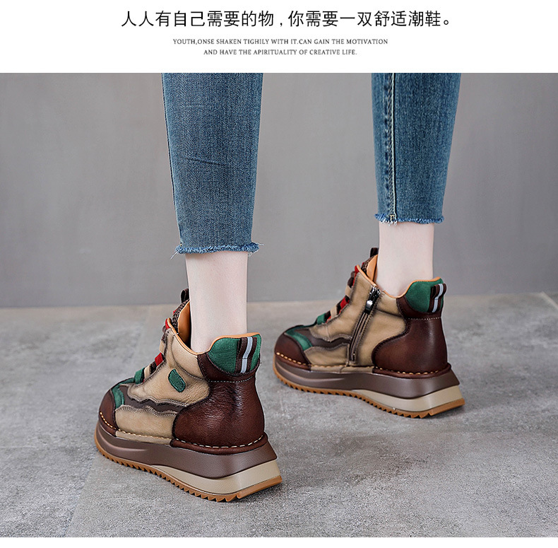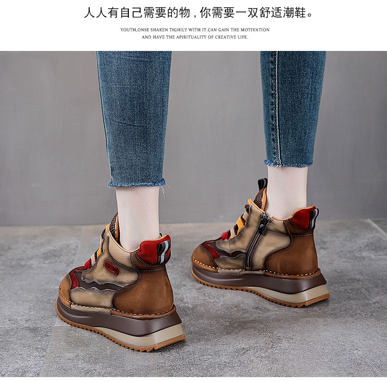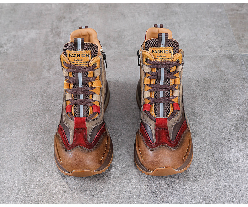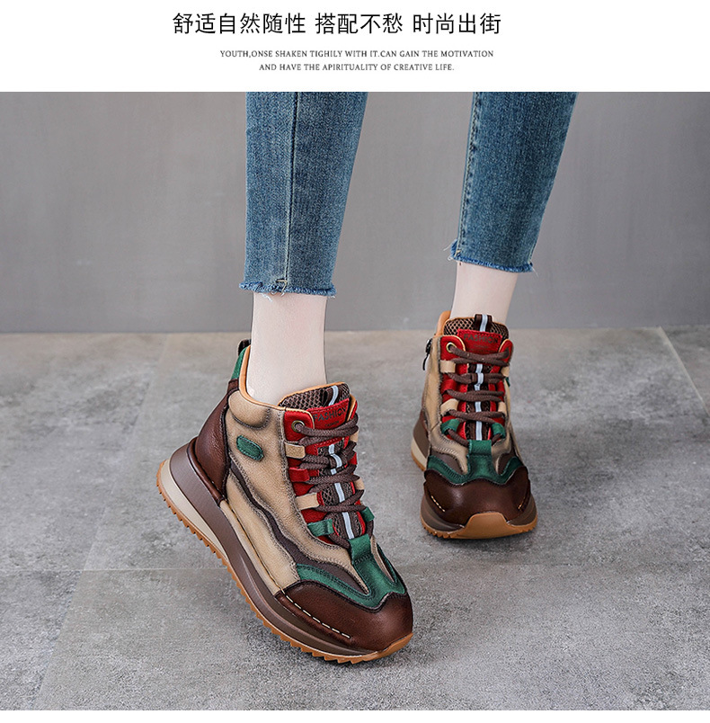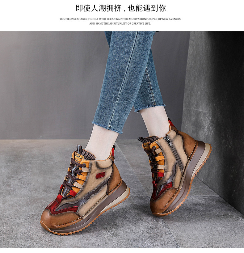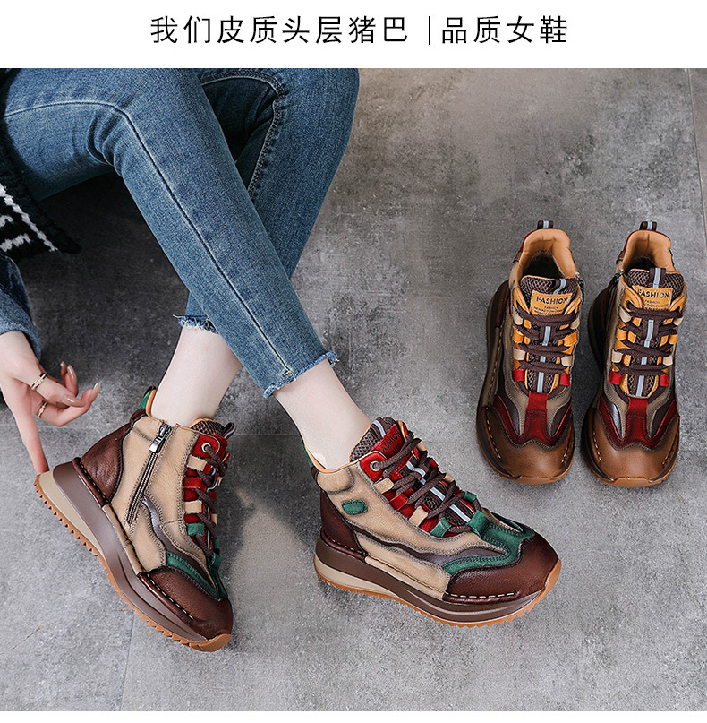 가을과 겨울 새로운 1 층 소 가죽 하이탑 신발 여성용 아버지 신발 정품 가죽 기모 마틴 부츠 짧은 캐주얼 스포츠 여성 신발스토어 가기