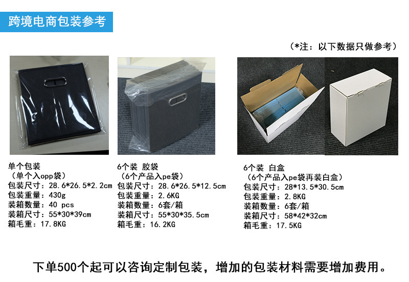 부직포 서랍 상자 의류 정리 상자 보관 상자 뚜껑이없는 단일 금속 버클 핸들 접이식 보관 상자