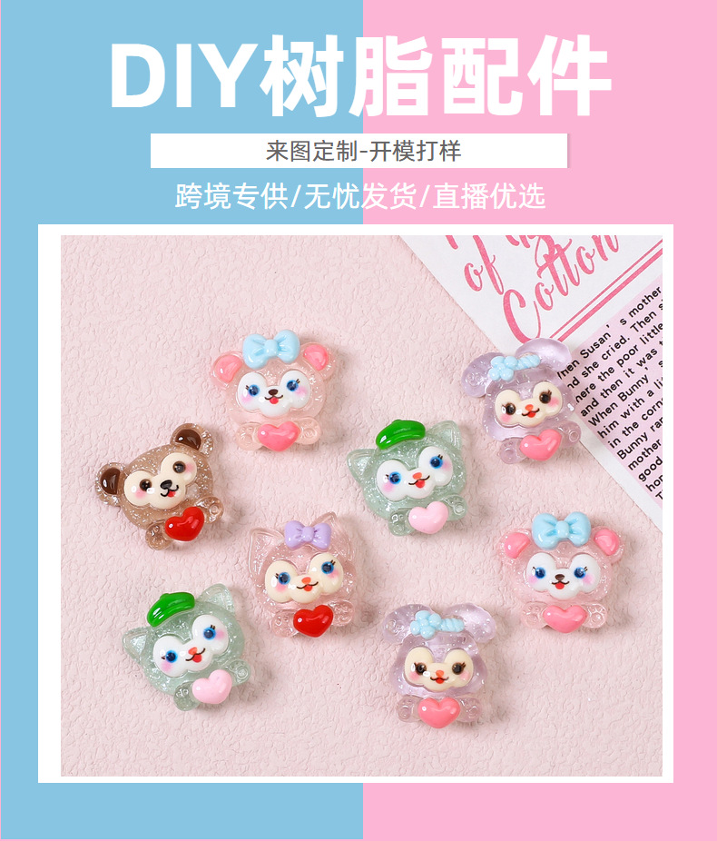 사랑 동물 크림 접착제를 통해 만화 얼음 DIY 수제 머리핀 냉장고 스티커 소재 수지 액세서리 도매