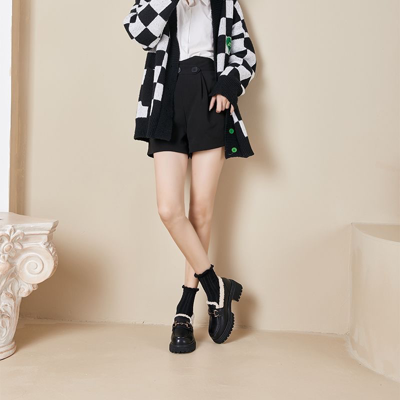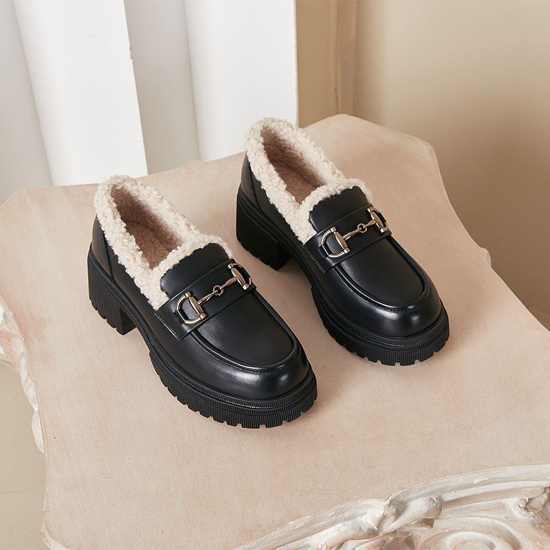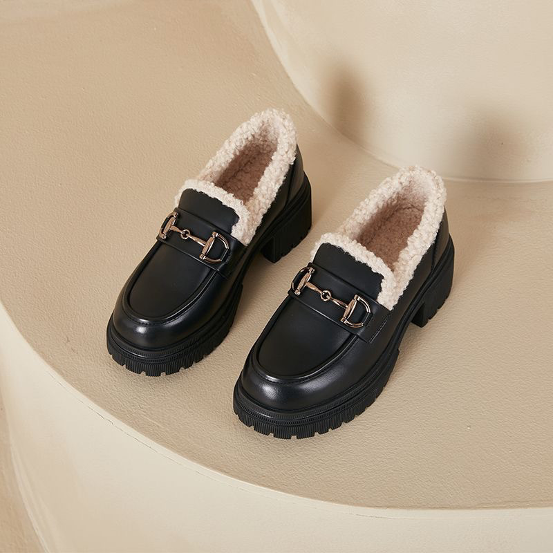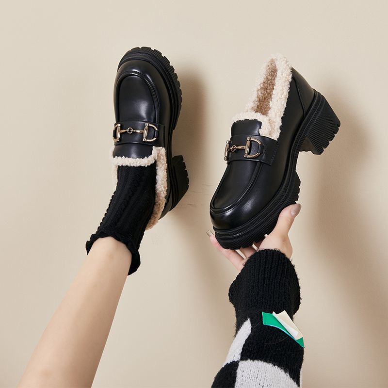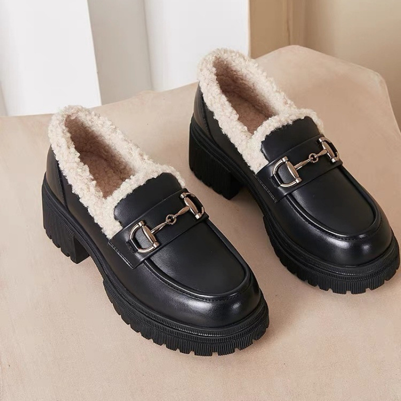 여성을위한 Z 두꺼운 밑창 벨벳 로퍼 2024 새로운 가을, 겨울 영국 스타일 작은 가죽 신발 모피 신발 따뜻한 레이스 업 코튼스토어 가기