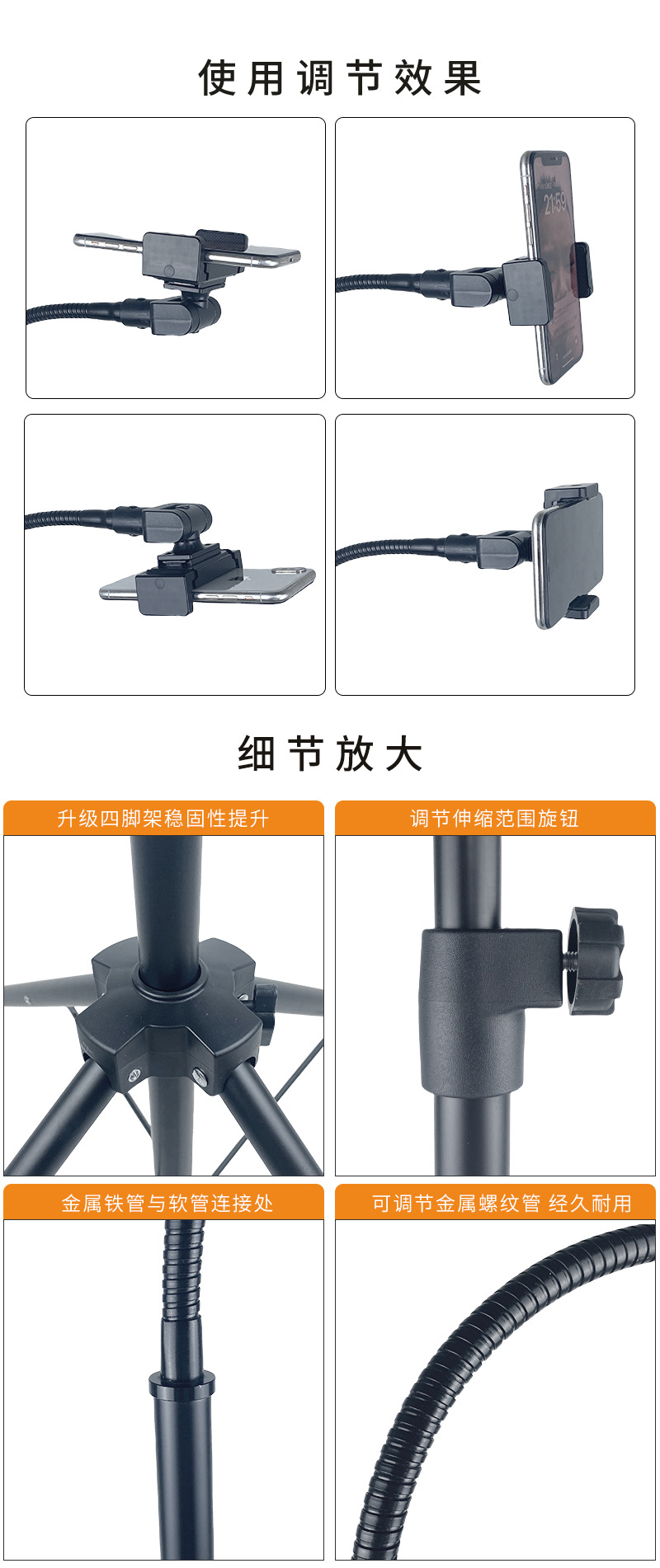 휴대폰 스탠드, 접이식 4각 스탠드, 360도 회전 셀카봉, 휴대폰 라이브 방송용 스탠드