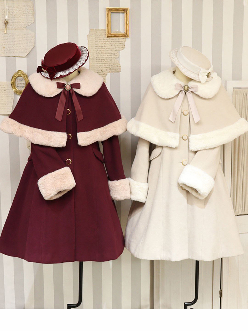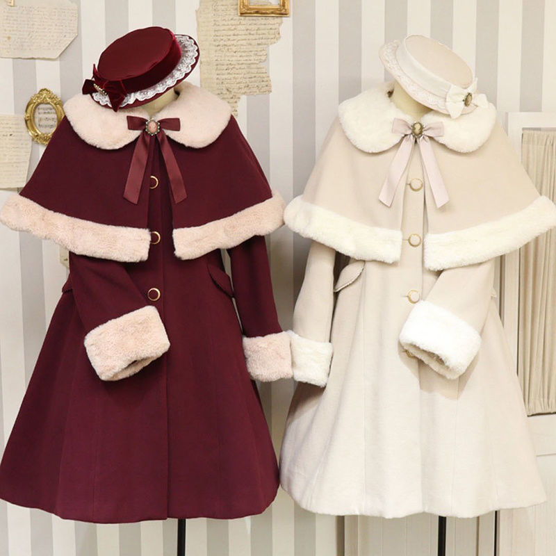 크리스마스 전쟁 가운-작은 케이프 2 피스 코트 2024 가을과 겨울 새로운 틈새 달콤한 원피스 A-라인