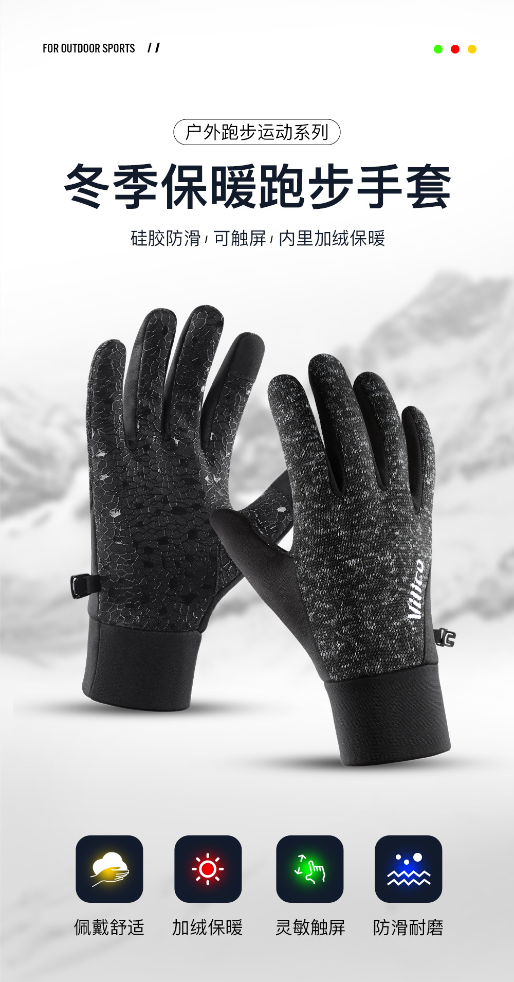 겨울 새로운 야외 따뜻한 차가운 달리기 장갑 남녀 터치 스크린 미끄럼 방지 스포츠 사이클링 스키 장갑 도매
