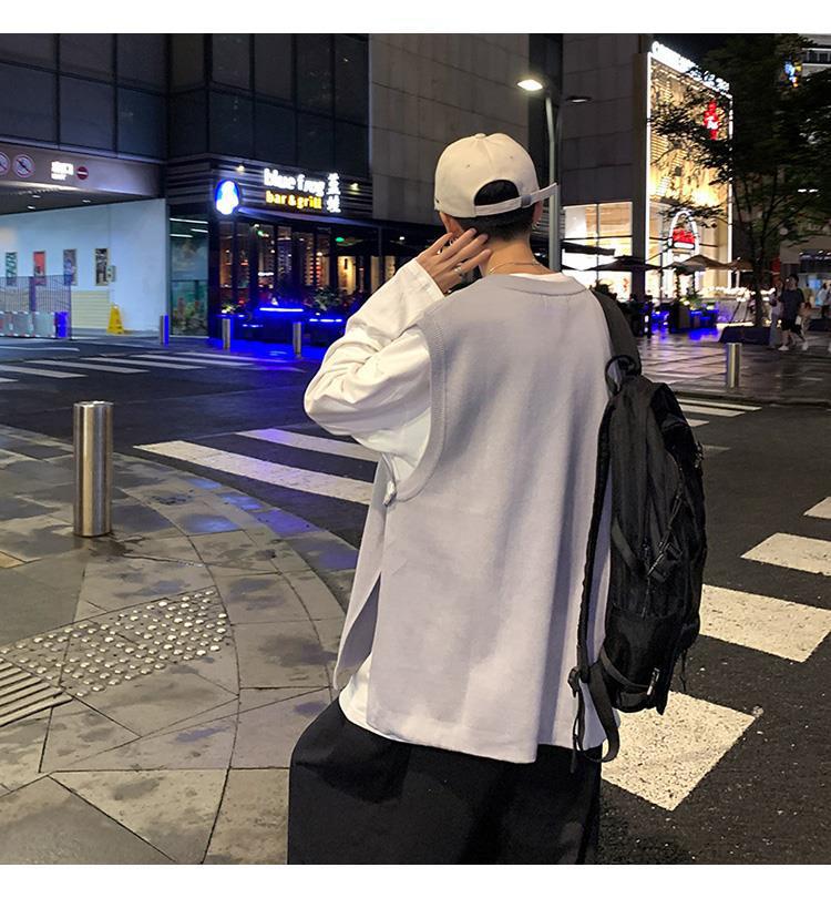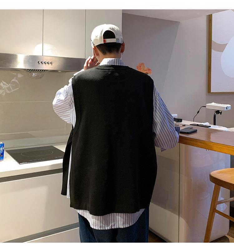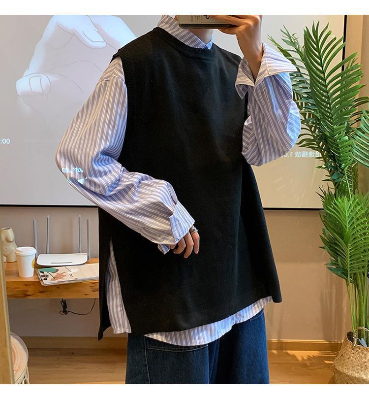 스플릿 스웨터 조끼 남자 홍콩 스타일 봄과 가을 Ins Outer Waistcoat 패셔너블 올 매치 루즈 니트 조끼