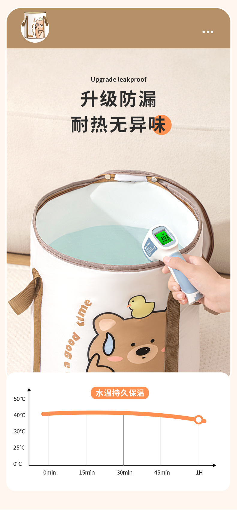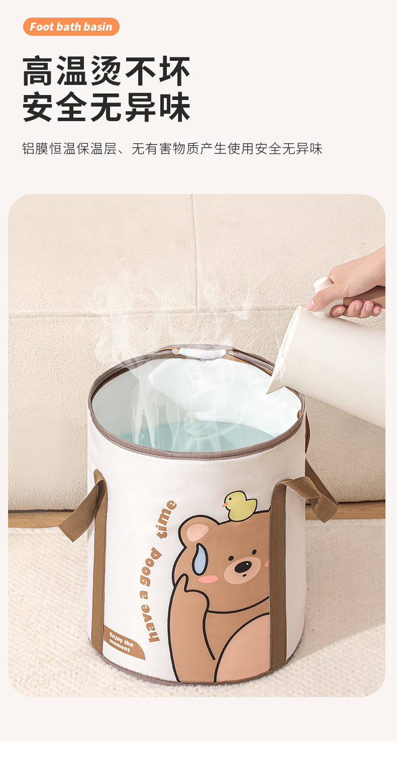 만화 창조적 인 디자인 발 버킷 다층 알루미늄 필름 절연 뚜껑 야외 방수 휴대용 접이식 발 양동이