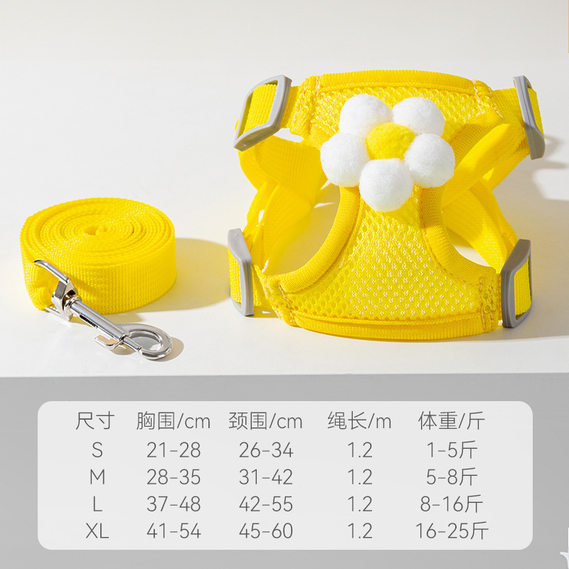 로킹 꽃 개 견인 로프 조끼 가슴 스트랩 테디 Bixiong 애완 동물 걷는 고양이 워킹 로프스토어 가기