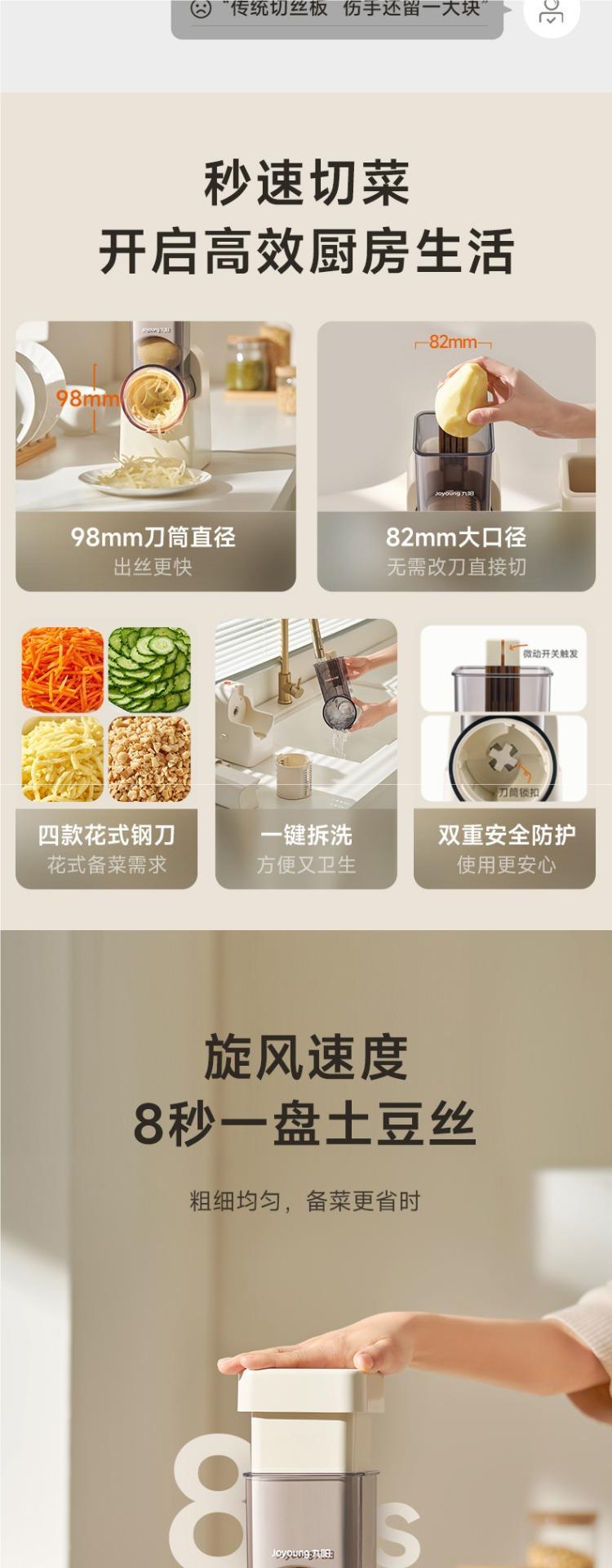 Jiuyang 전기 야채 절단기 야채 절단 인공물 주방 가정용 다기능 강판 실크 닦아 감자 분쇄기스토어 가기