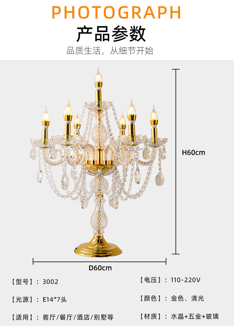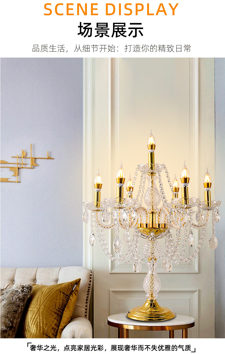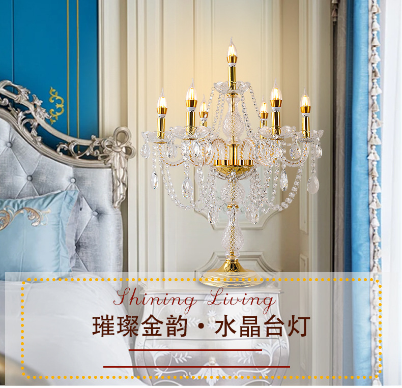 유럽식 거실 테이블 램프 빛 고급 침실 침실 크리스탈 테이블 램프 빌라 연구 레스토랑 LED 장식 촛대 램프스토어 가기