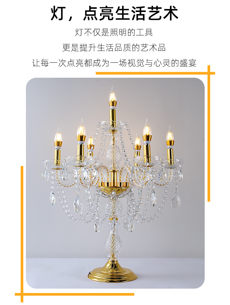 유럽식 거실 테이블 램프 빛 고급 침실 침실 크리스탈 테이블 램프 빌라 연구 레스토랑 LED 장식 촛대 램프