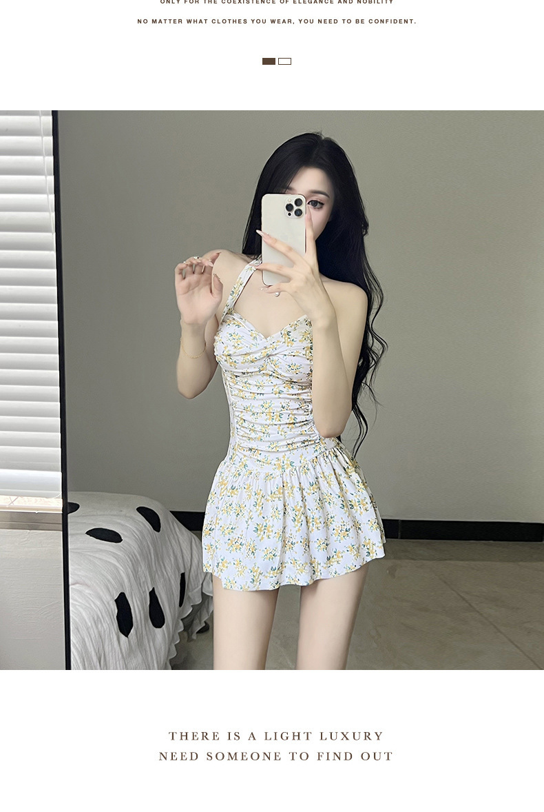 수영복 여성 2025 년 새 섹시 넥 지퍼 스커트 살을 가리는 슬리밍 나비 인쇄 일본과 한국 스타일 온천 수영복스토어 가기