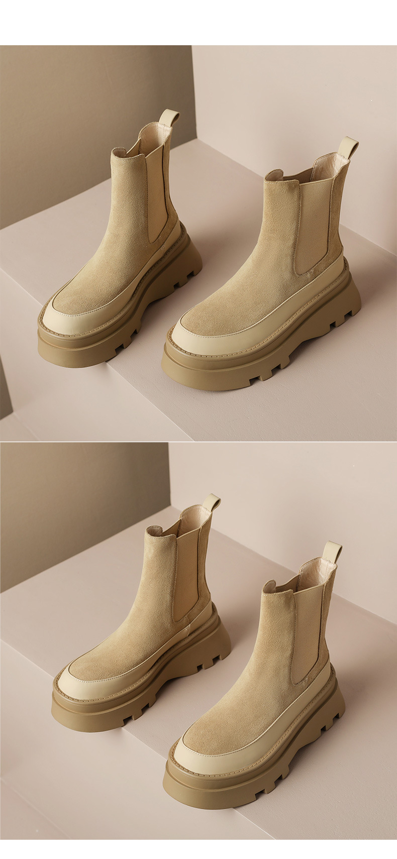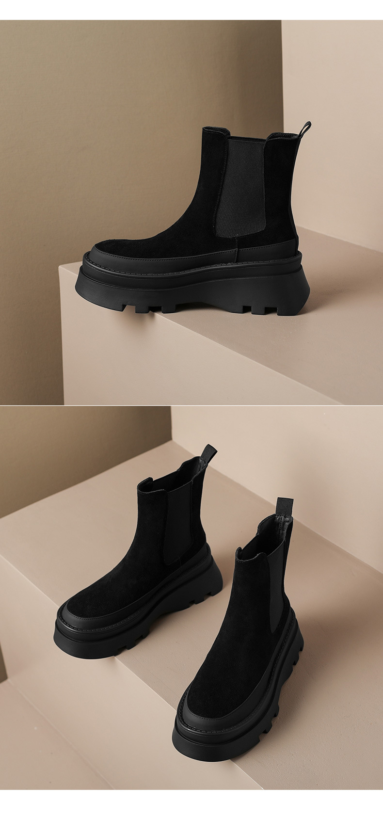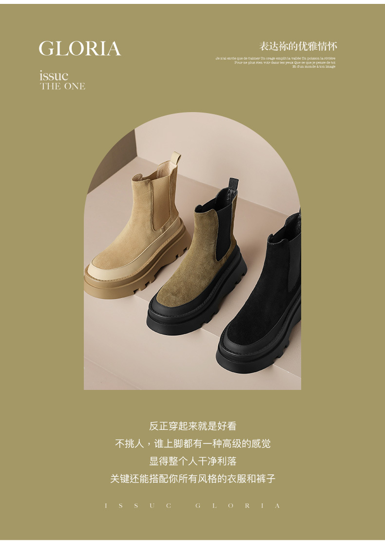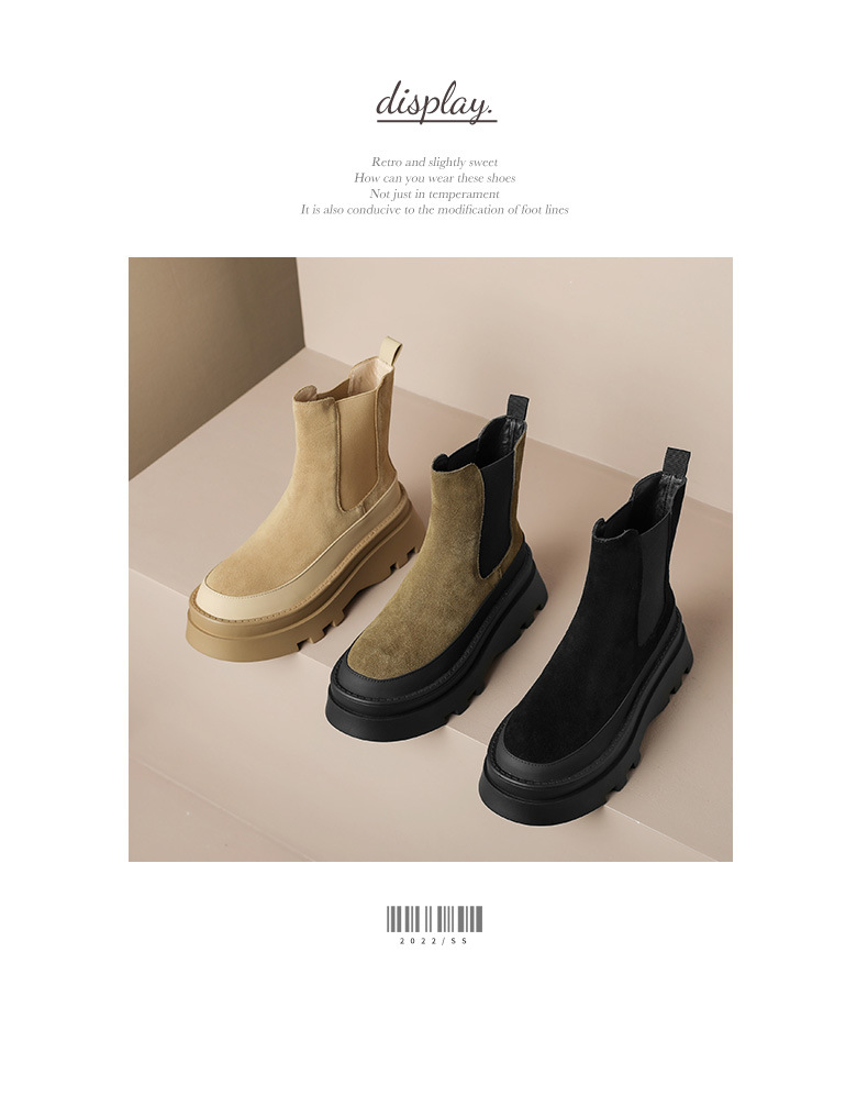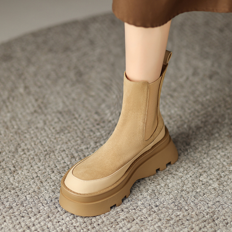 영국 스타일 두꺼운 바닥 플랫폼 첼시 부츠 여성 정품 가죽 2024 새로운 가을 및 겨울 하이힐 웨지 얇은 짧은 부츠스토어 가기