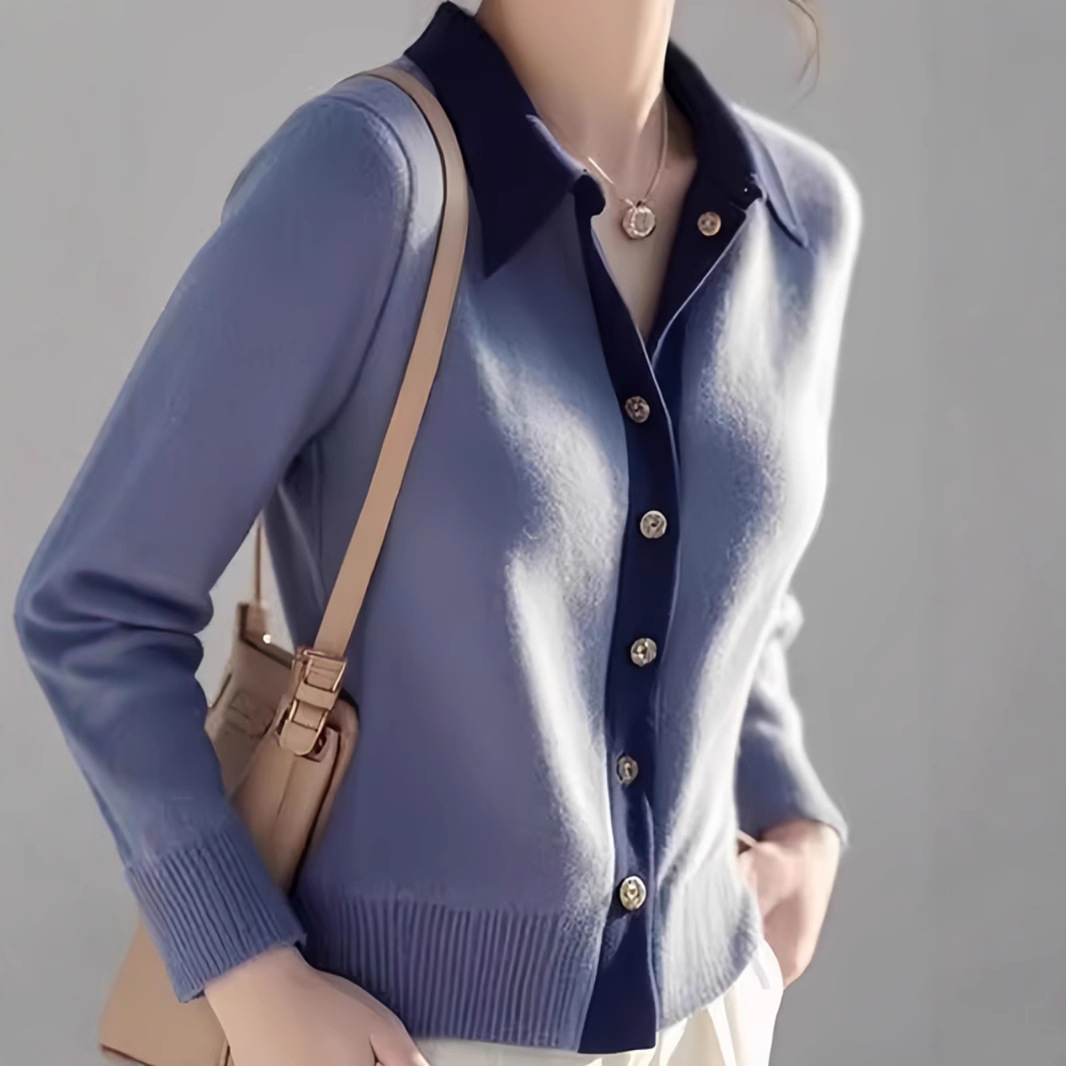 2024 겨울 새로운 독특한 세련된 아름다운 최고 디자인 감각 틈새 높은 감각 외국 스타일 블루 니트 카디건스토어 가기