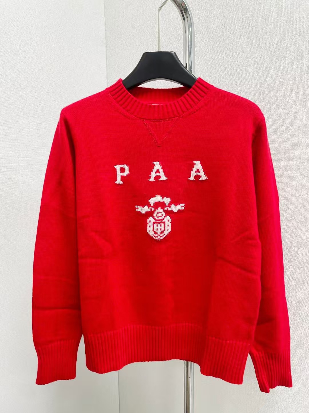 가을과 겨울을위한 하이 세트 트라이앵글 표준 클래식 편지 Jacquard Crewneck 니트 스웨터 24 새로운 소프트 조커 유행 스웨터스토어 가기