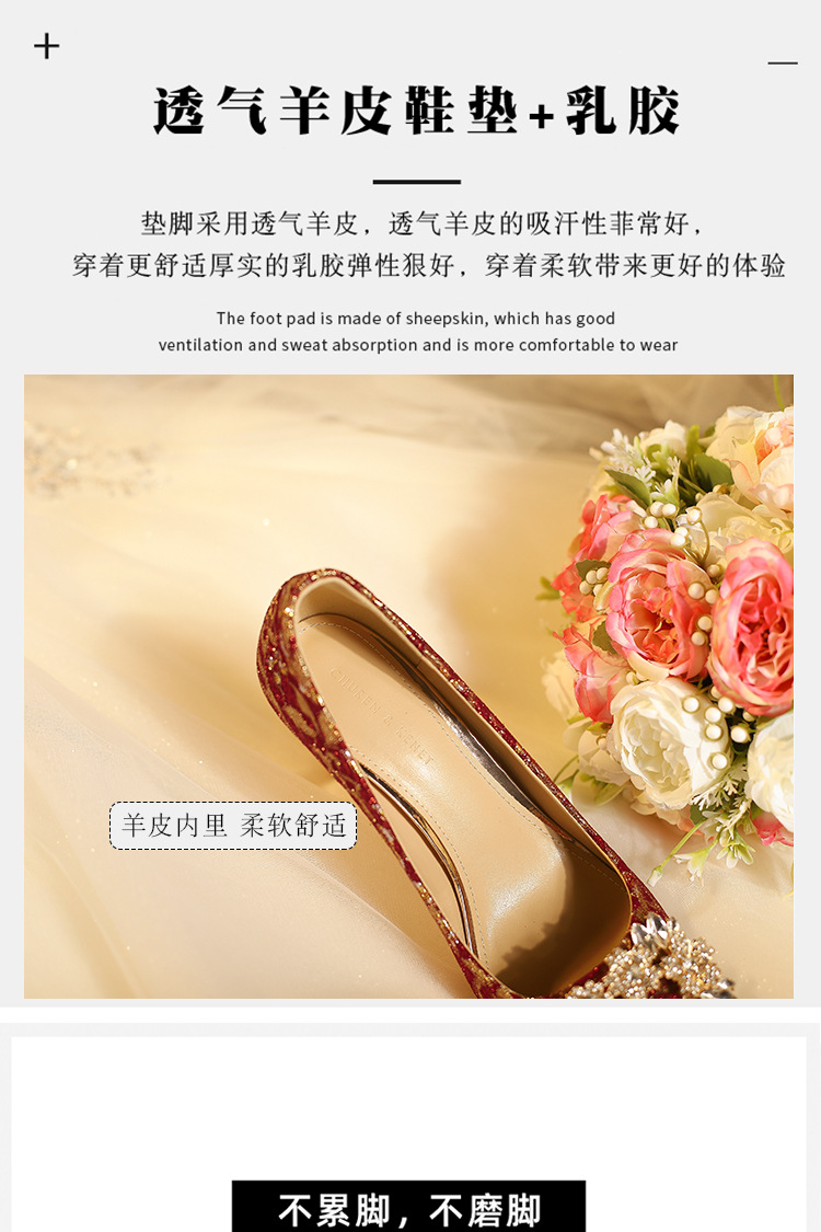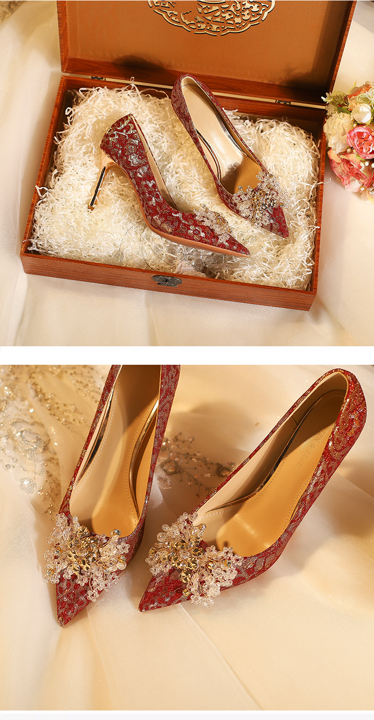 828-10 신중국풍 예복 크리스탈 얇은 굽 얕은 구두 여성용 신부 구두 크리스탈 웨딩 슈즈