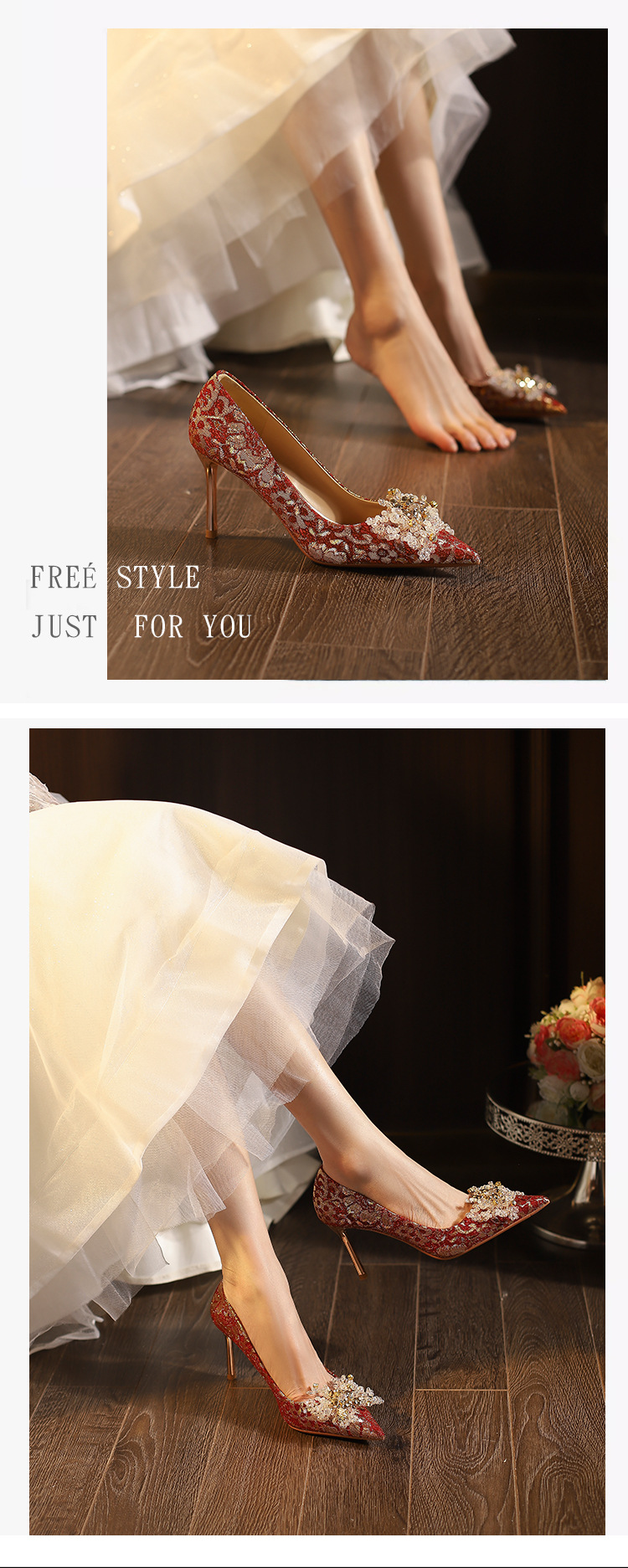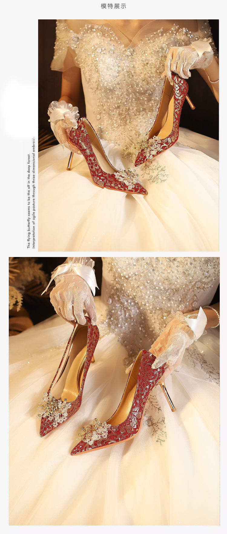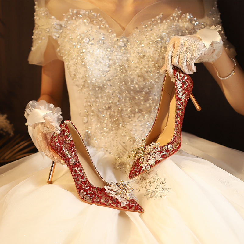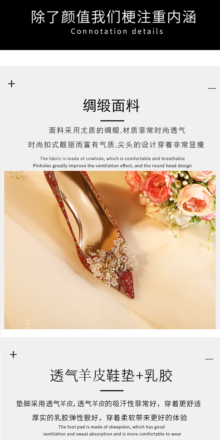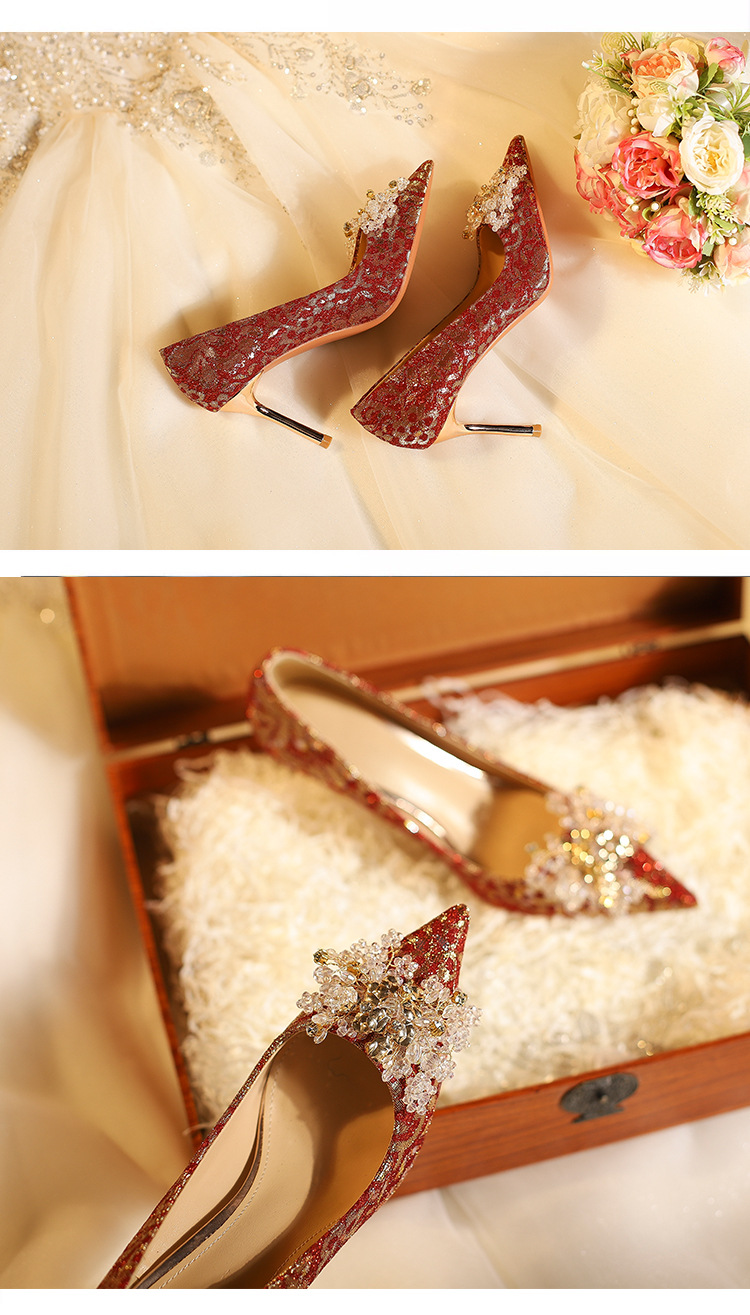 828-10 신중국풍 예복 크리스탈 얇은 굽 얕은 구두 여성용 신부 구두 크리스탈 웨딩 슈즈스토어 가기