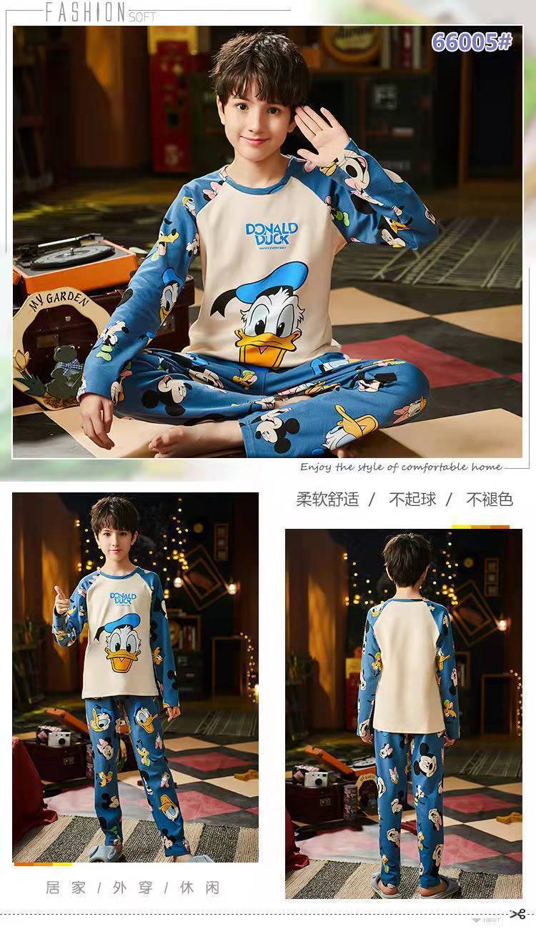 [밀크실크 원단] 봄 · 가을 소년들의 얇은 잠옷 세트 긴 소매 바지 둥근 목 풀오버 중 · 큰 어린이 잠옷스토어 가기