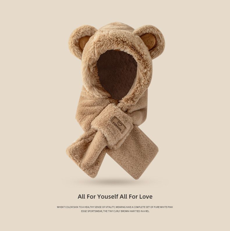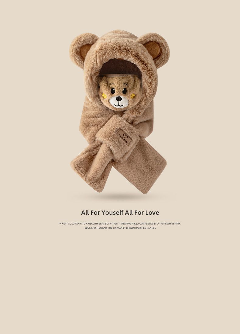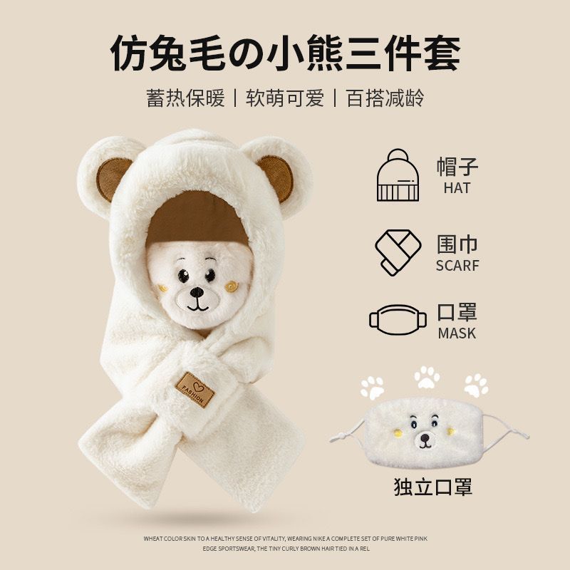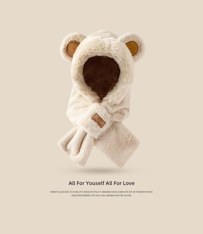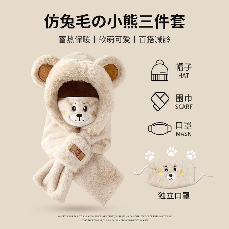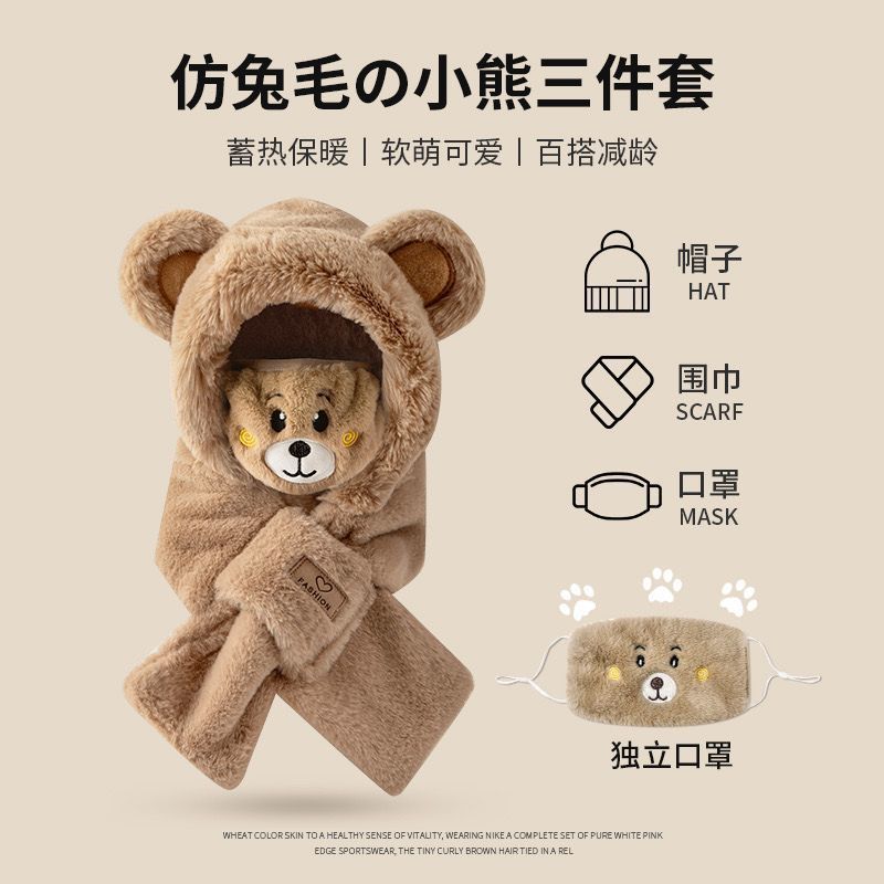 모자 스카프 겨울 스카프 통합 후드 사이클링 추운 겨울 귀 보호 봉제 귀여운 곰 마스크 따뜻한스토어 가기