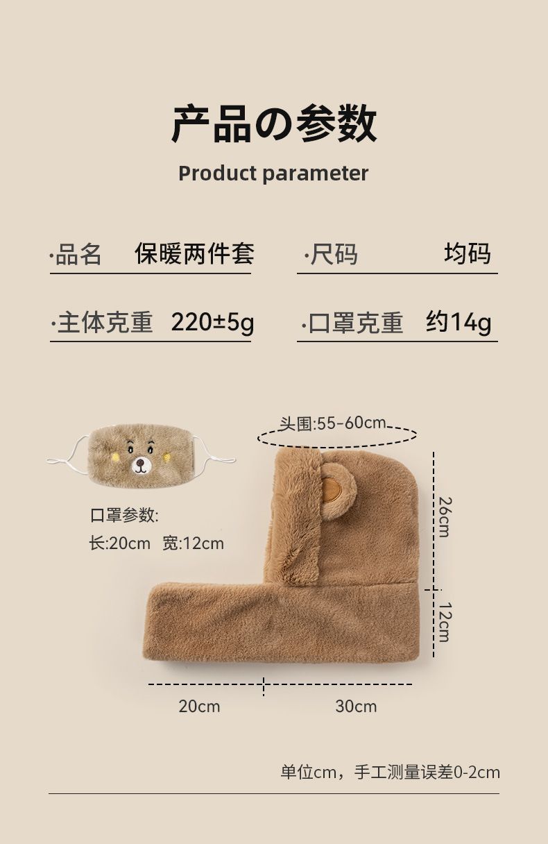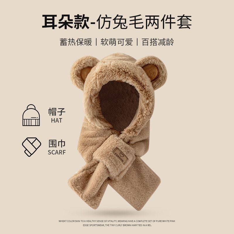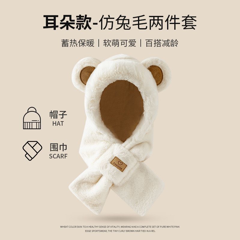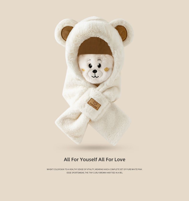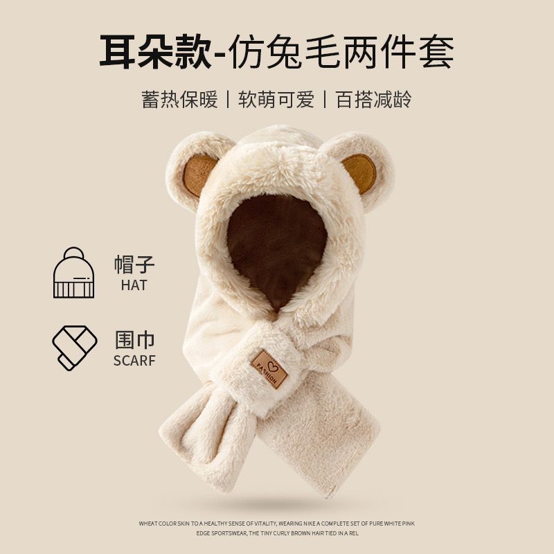 모자 스카프 겨울 스카프 통합 후드 사이클링 추운 겨울 귀 보호 봉제 귀여운 곰 마스크 따뜻한스토어 가기
