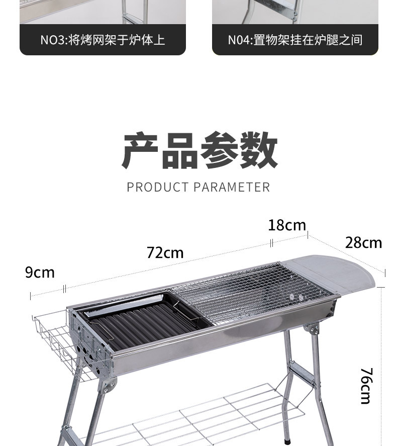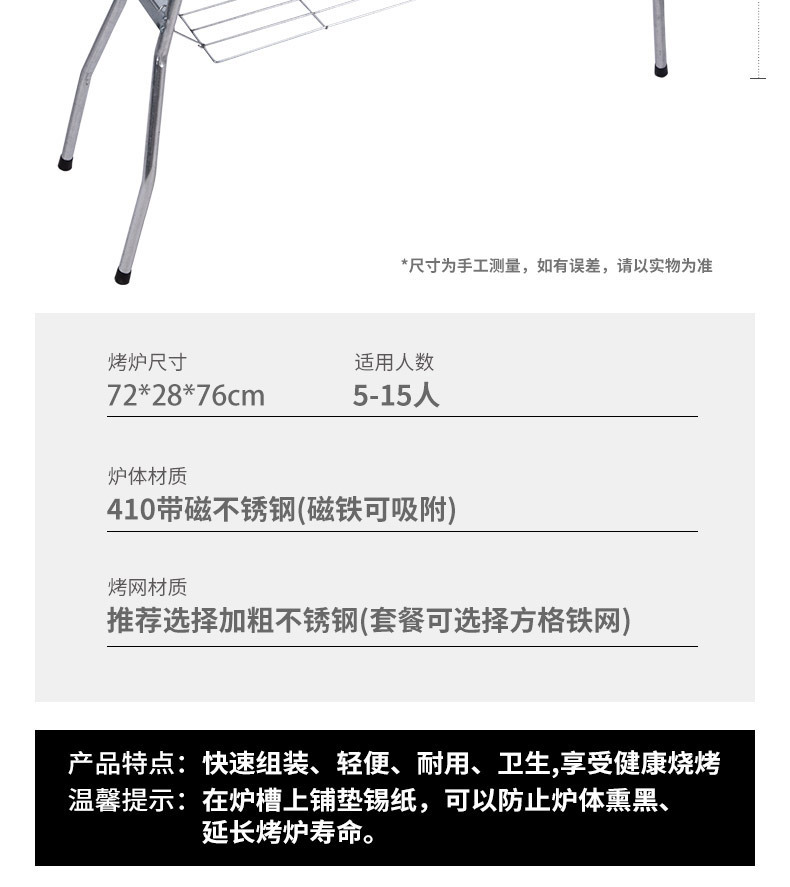 • 대형 스테인레스 스틸 바베큐 그릴 73*28*76 (사각형 그릴 그리드)