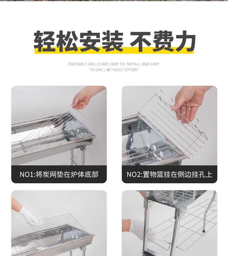 휴대용 바베큐 스토브 스테인레스 스틸 가정용 바베큐 선반 전체 세트 바비큐 그릴 야외 그릴 그물 바베큐스토어 가기