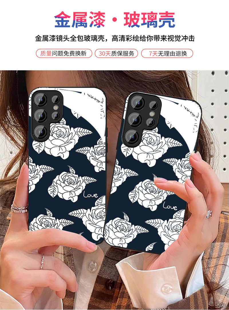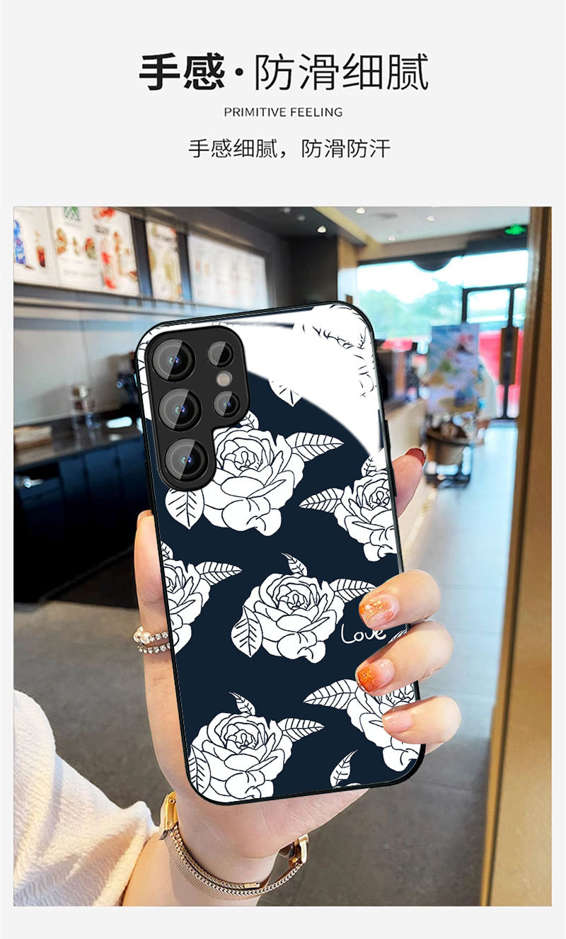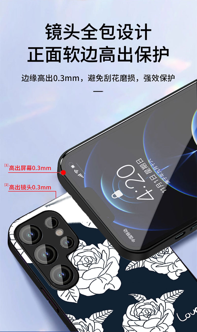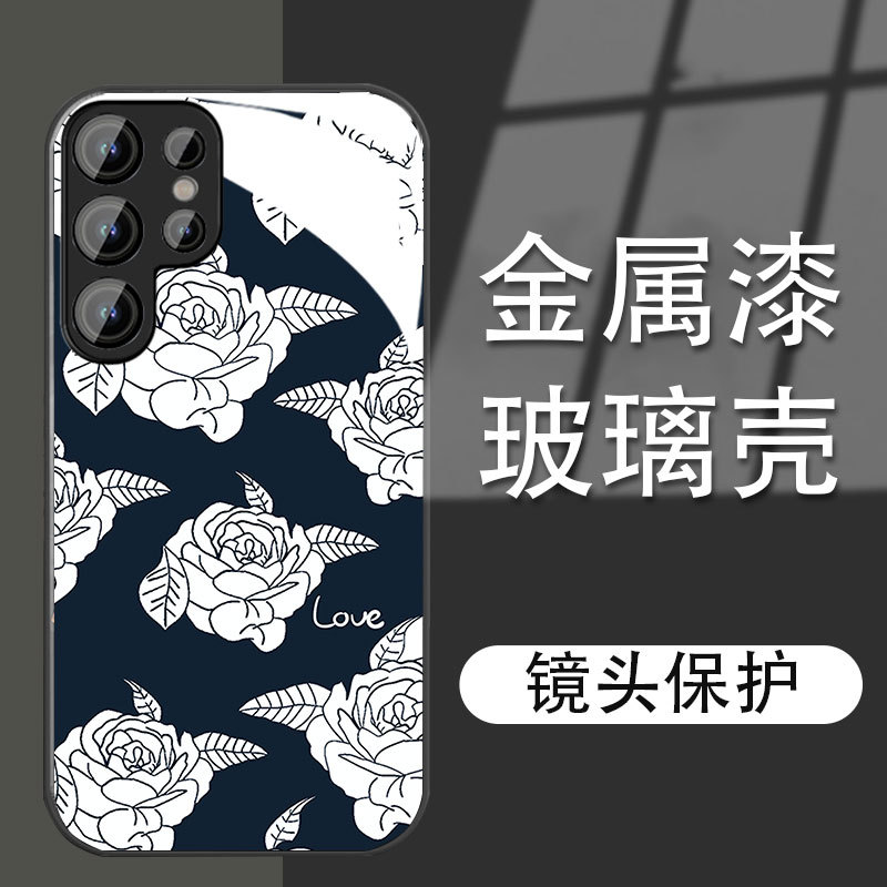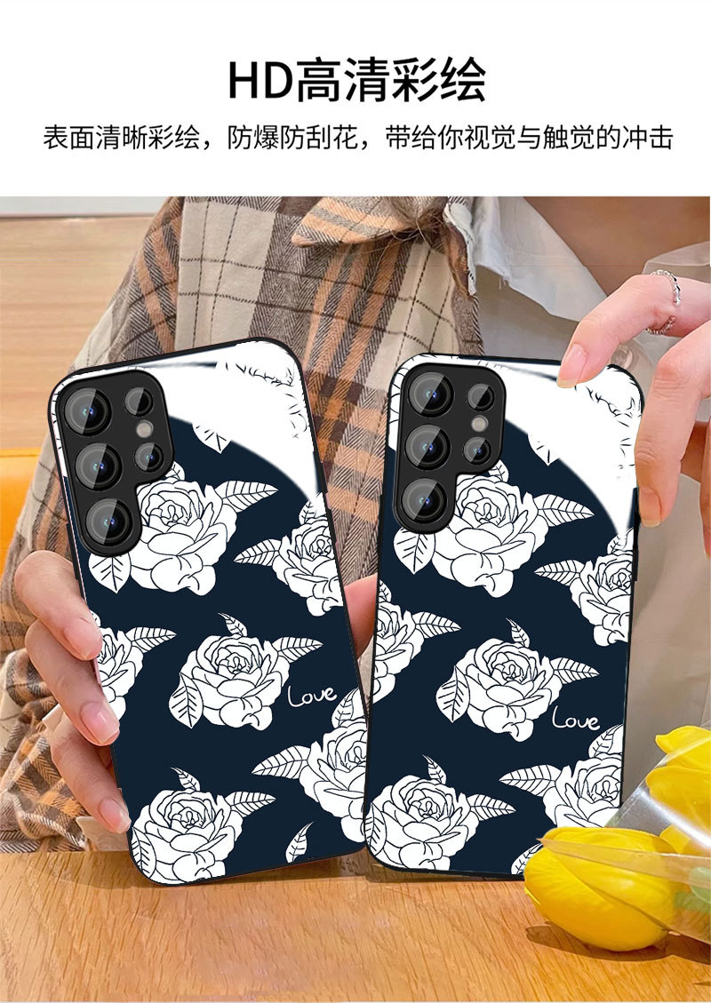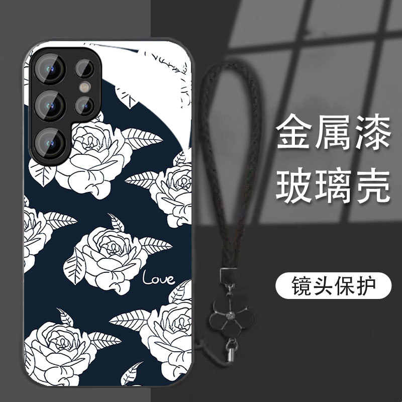삼성 S24울트라 휴대 전화 케이스 유리 파란색 흰색 꽃 s23PLUS 그물 빨간색 s22u 폭발 A55/A54스토어 가기