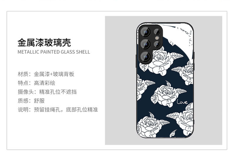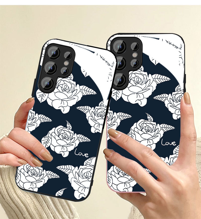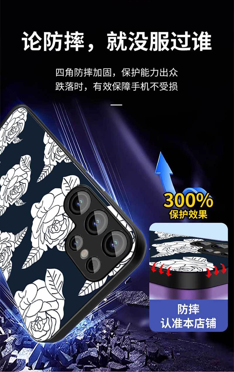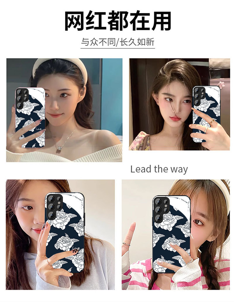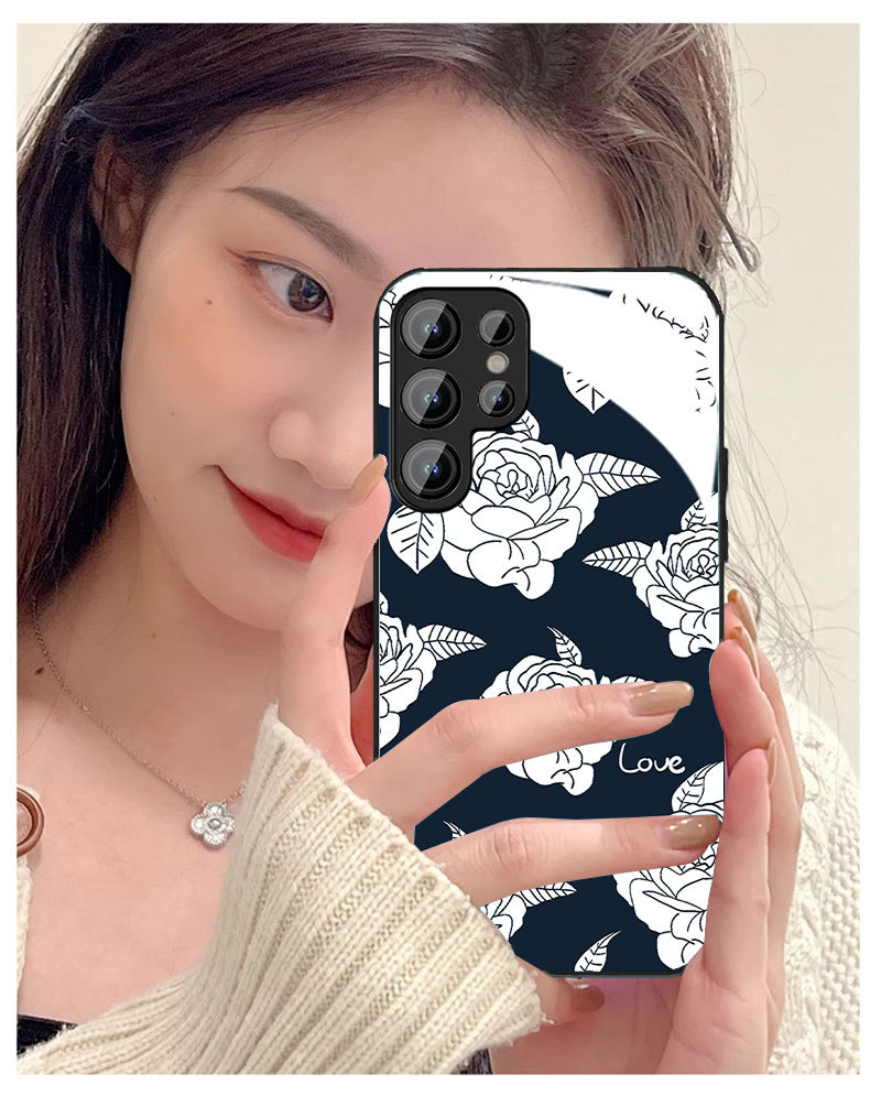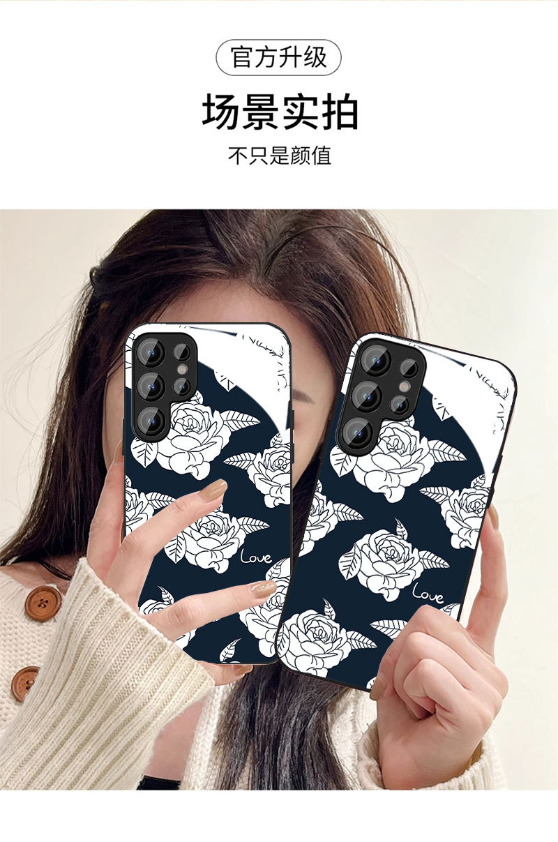 삼성 S24울트라 휴대 전화 케이스 유리 파란색 흰색 꽃 s23PLUS 그물 빨간색 s22u 폭발 A55/A54스토어 가기