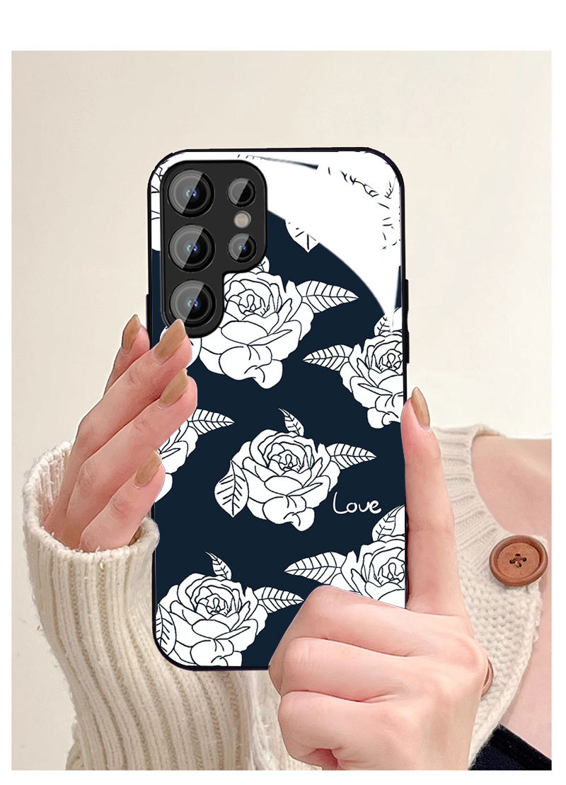 삼성 S24울트라 휴대 전화 케이스 유리 파란색 흰색 꽃 s23PLUS 그물 빨간색 s22u 폭발 A55/A54