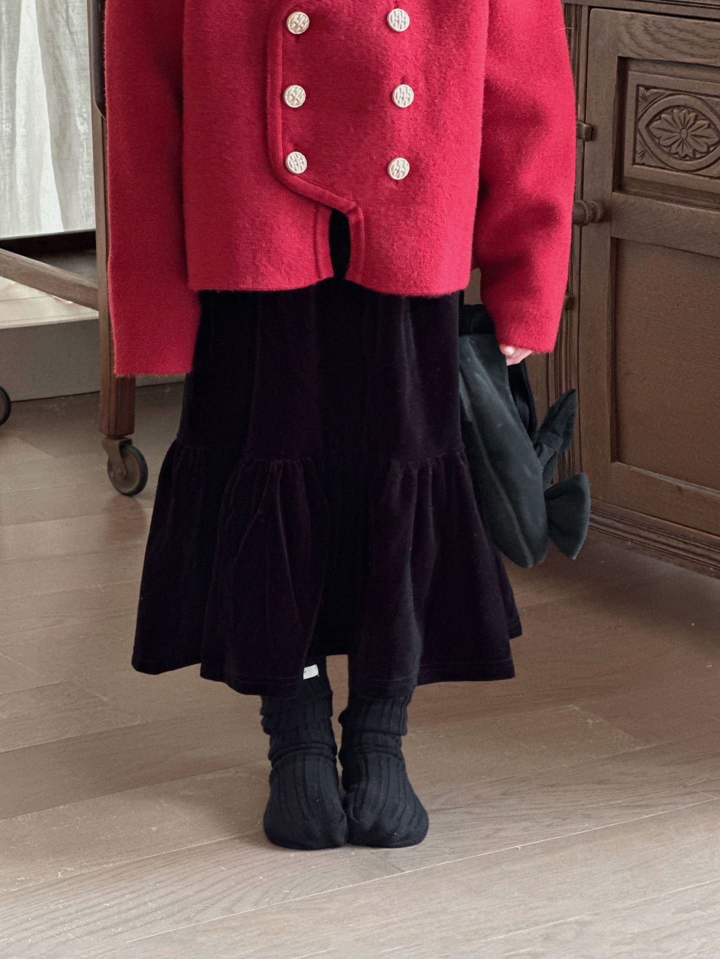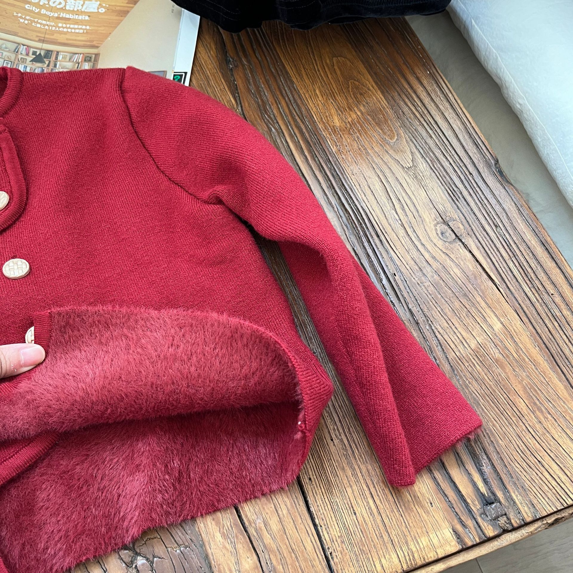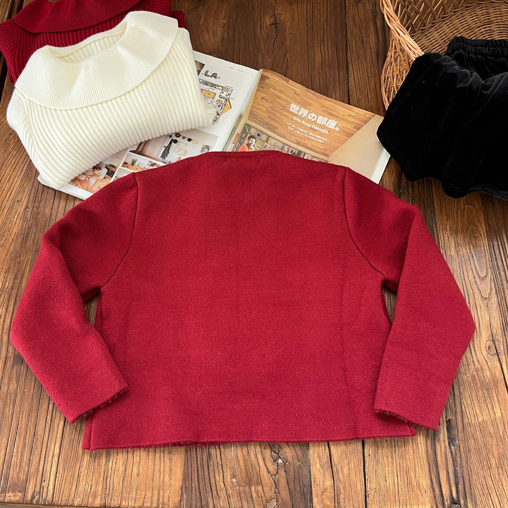 【기간한정 50% off】여아용 작은 향기로운 향기를 지닌 스타일리시한 코트, 겨울 신상 더블 버튼 레드 니트 가디건, 새해맞이 의상스토어 가기