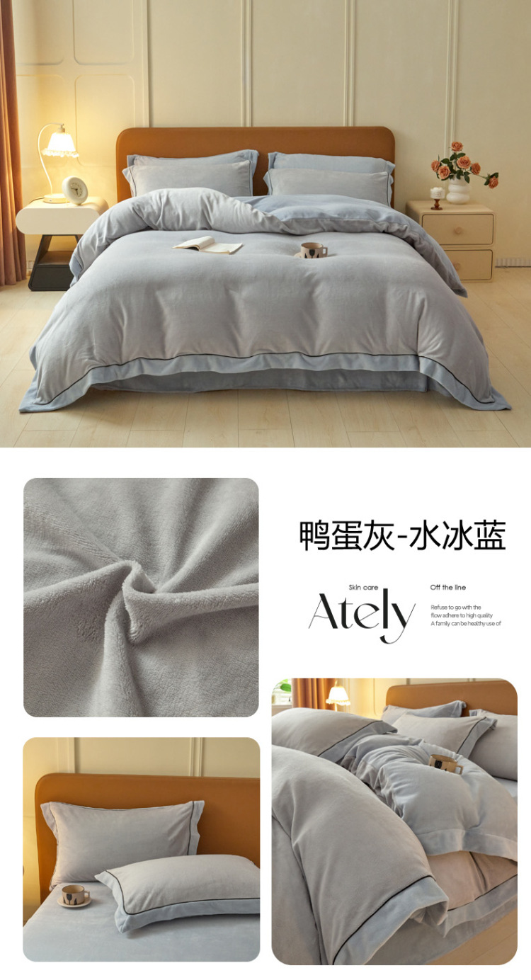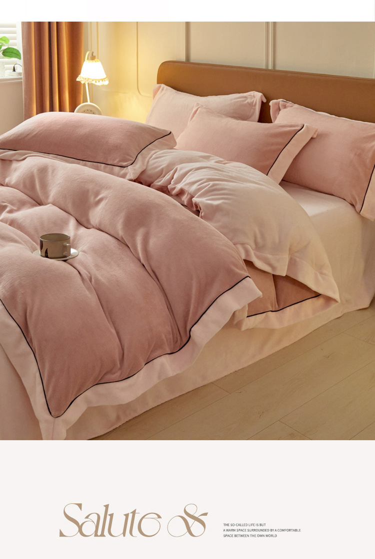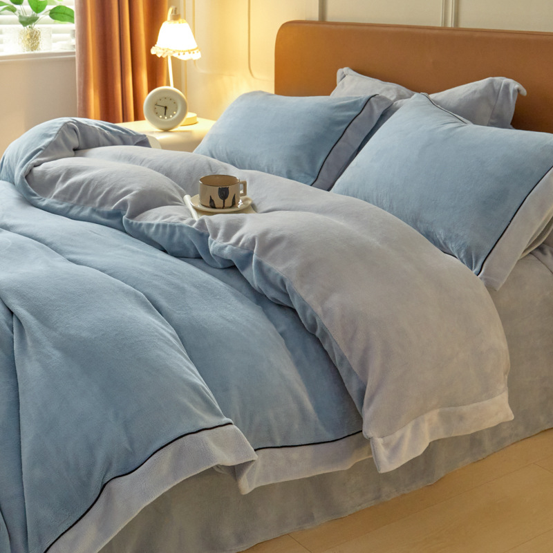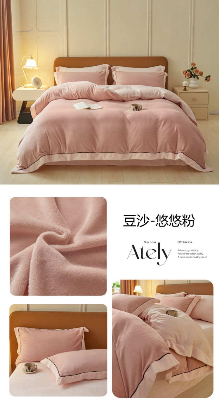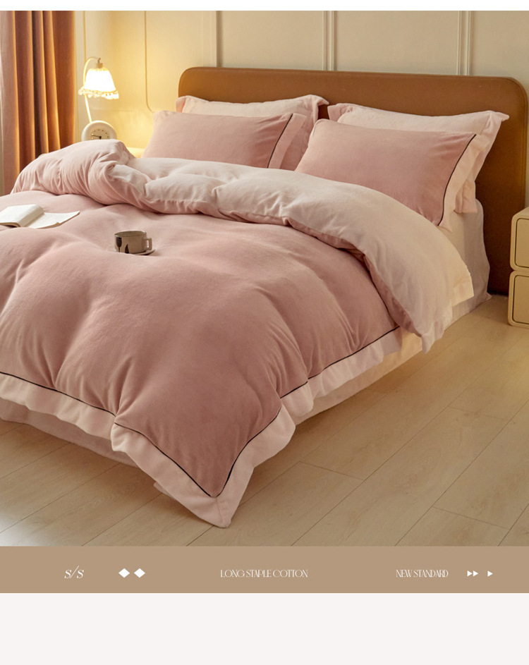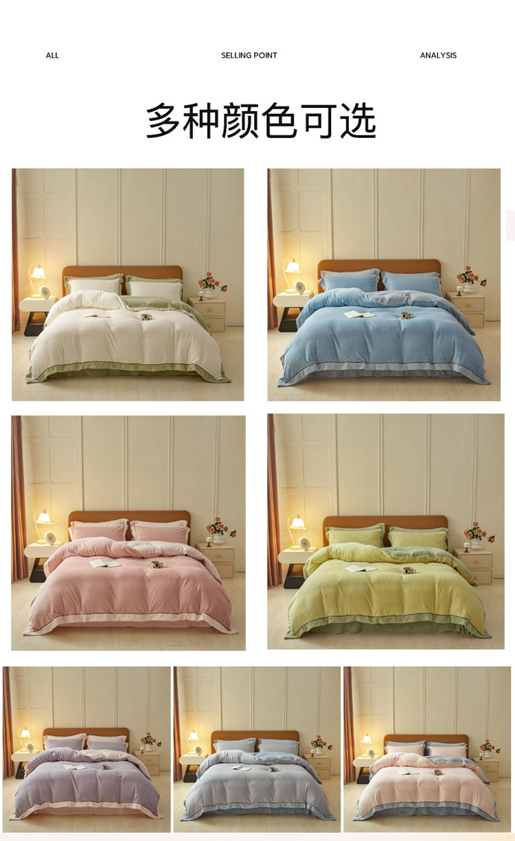 가을과 겨울 우유 벨벳 침대 4 피스 세트 단색 넓은 가장자리 코너 패딩 따뜻한 더블 퀼트 커버 시트 침구 도매스토어 가기