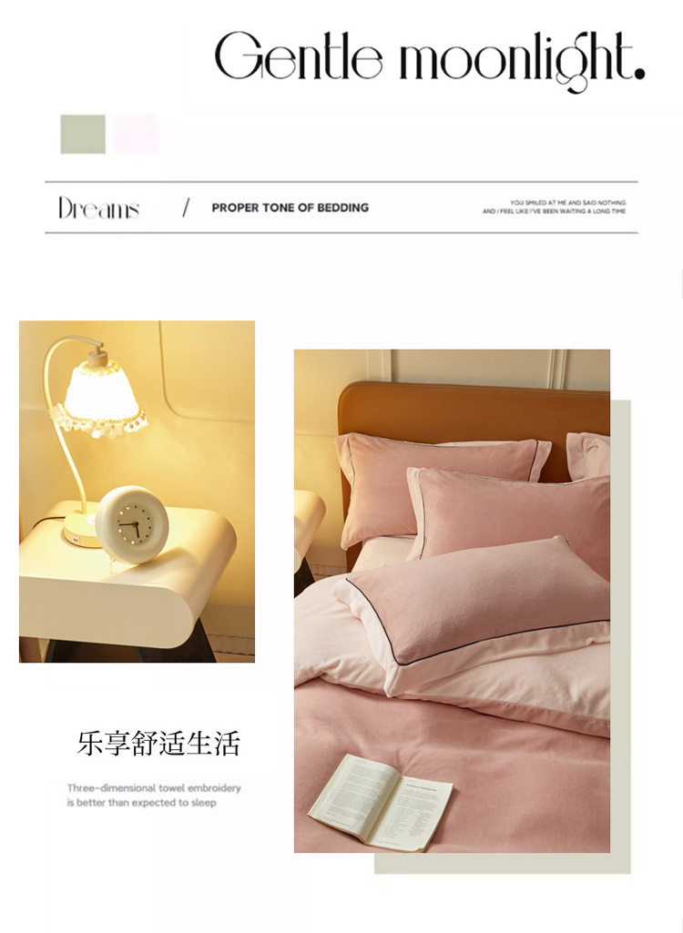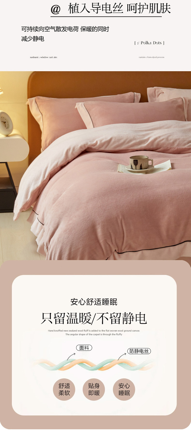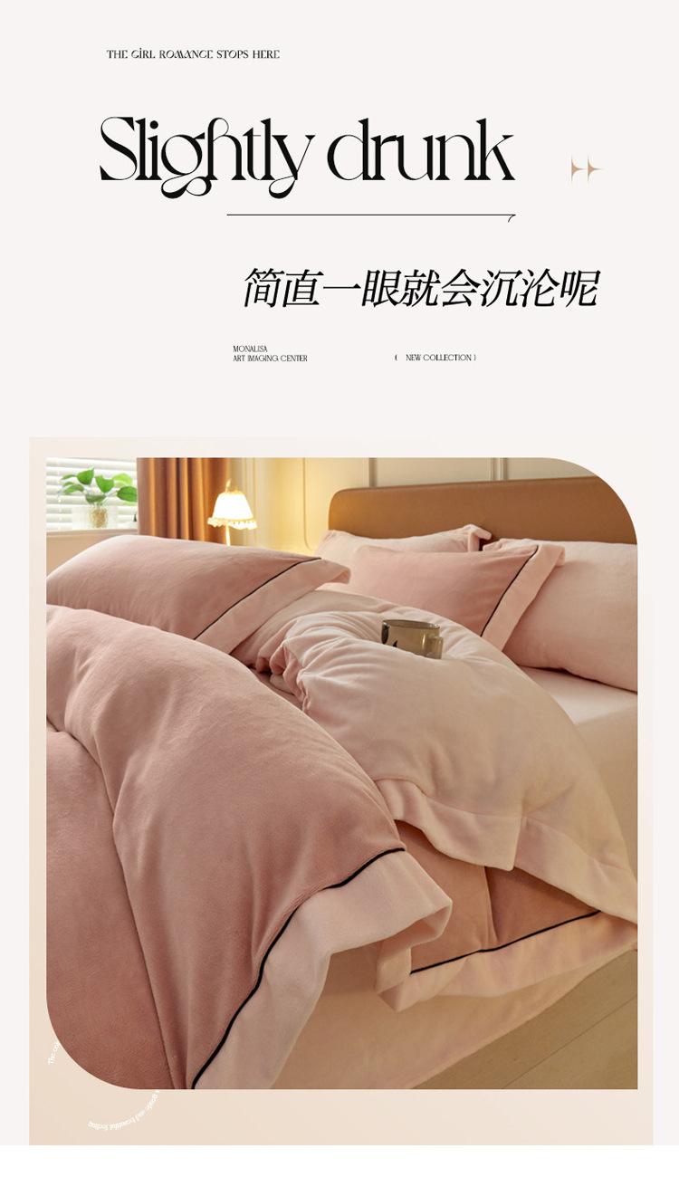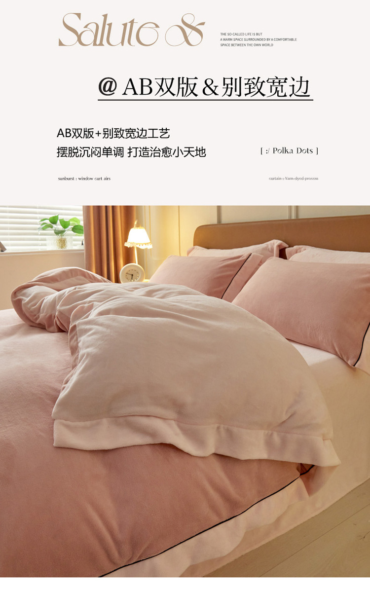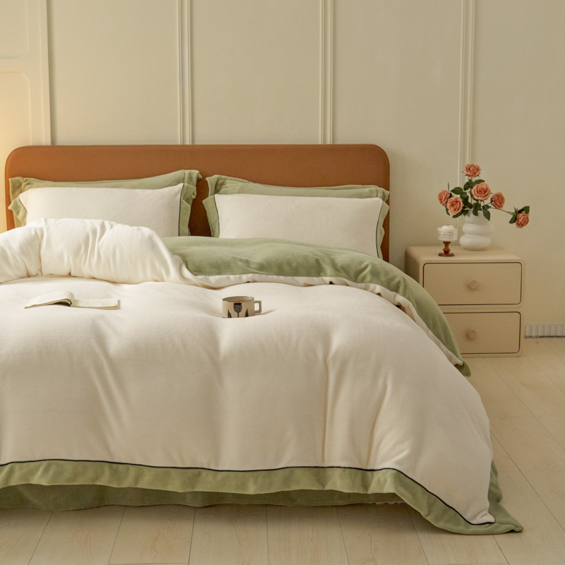 가을과 겨울 우유 벨벳 침대 4 피스 세트 단색 넓은 가장자리 코너 패딩 따뜻한 더블 퀼트 커버 시트 침구 도매스토어 가기
