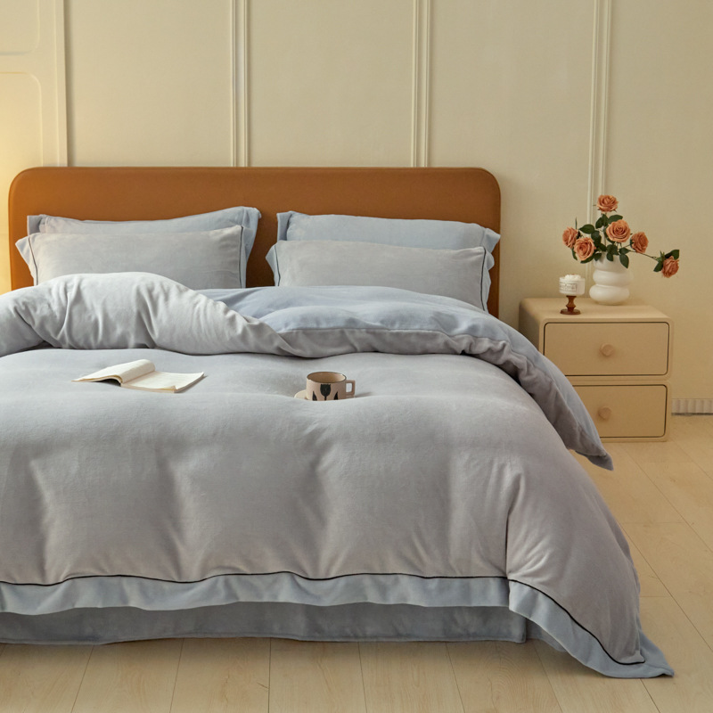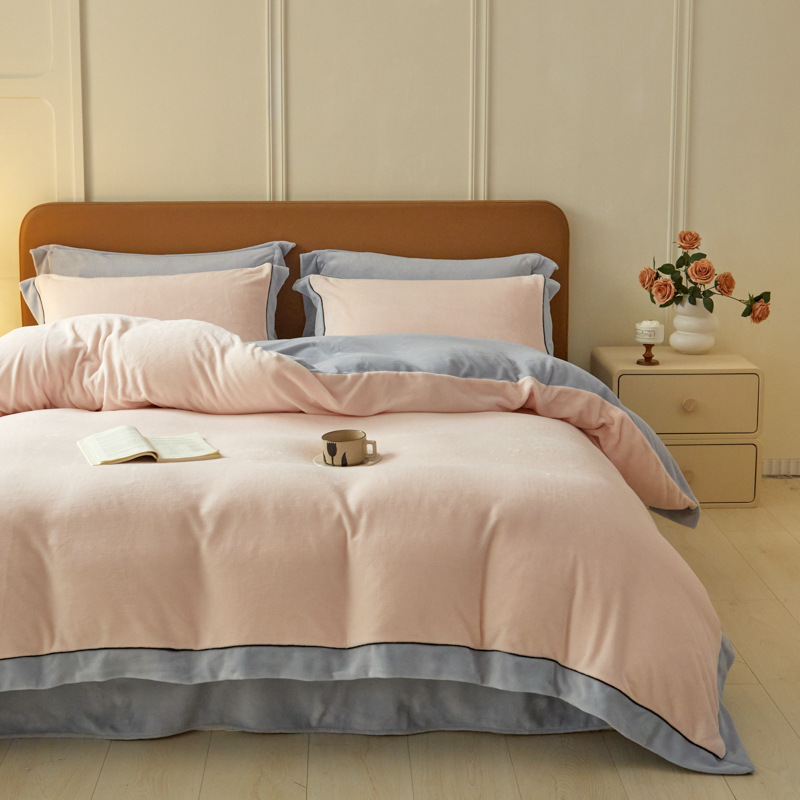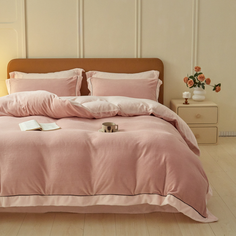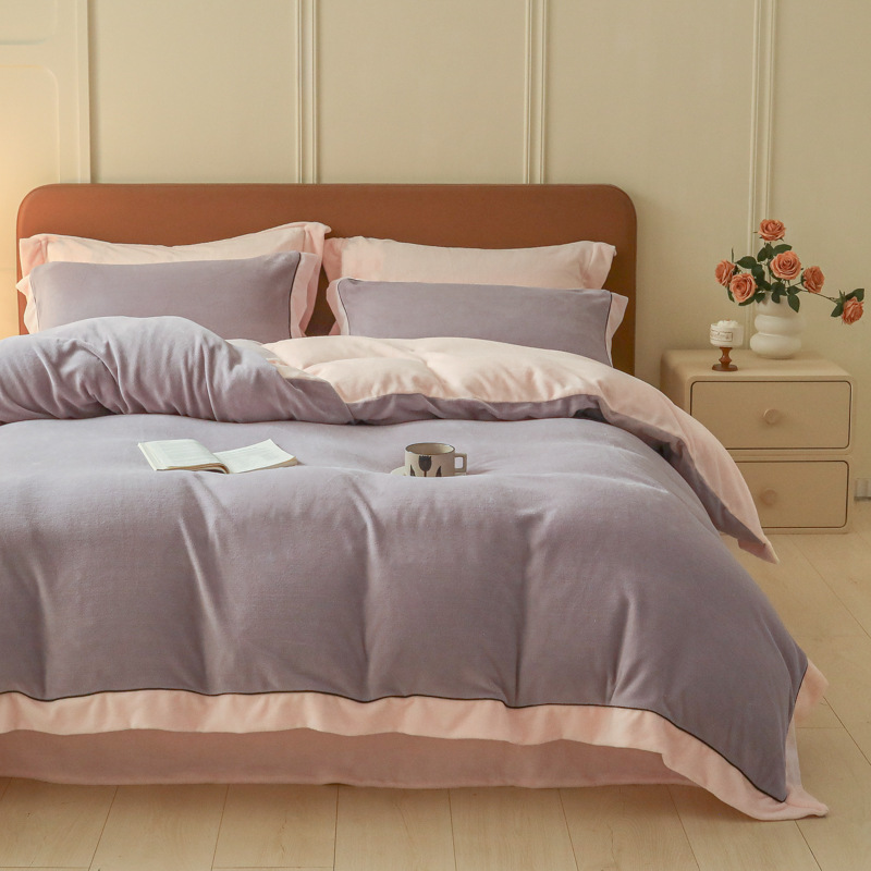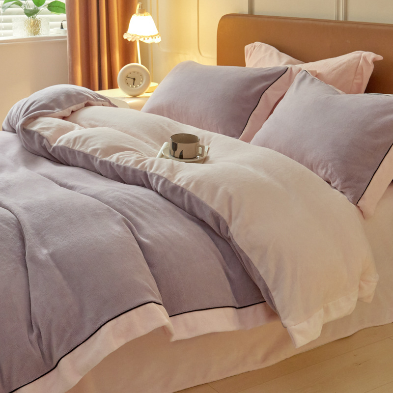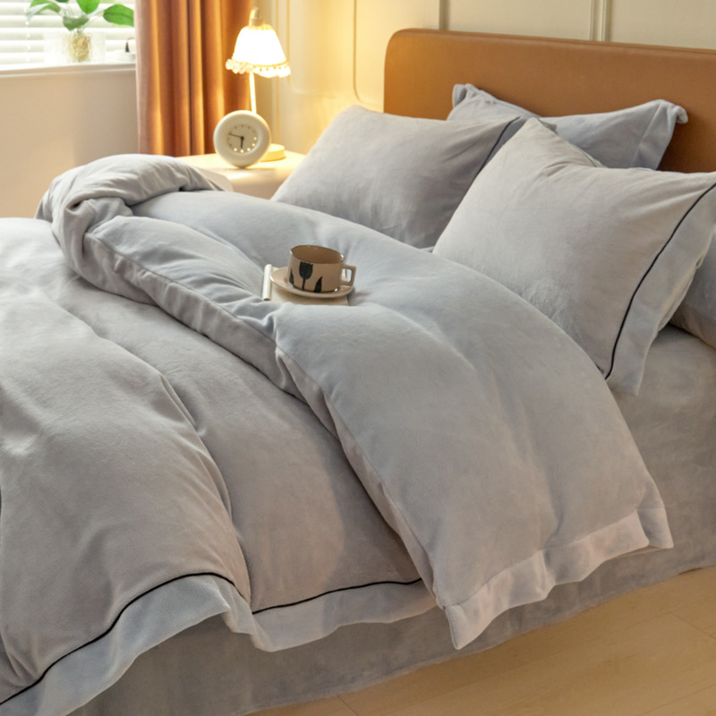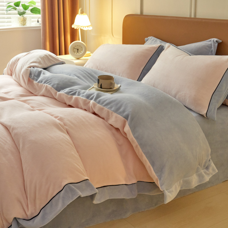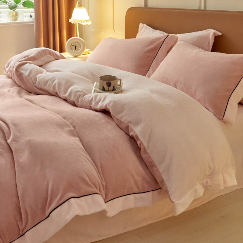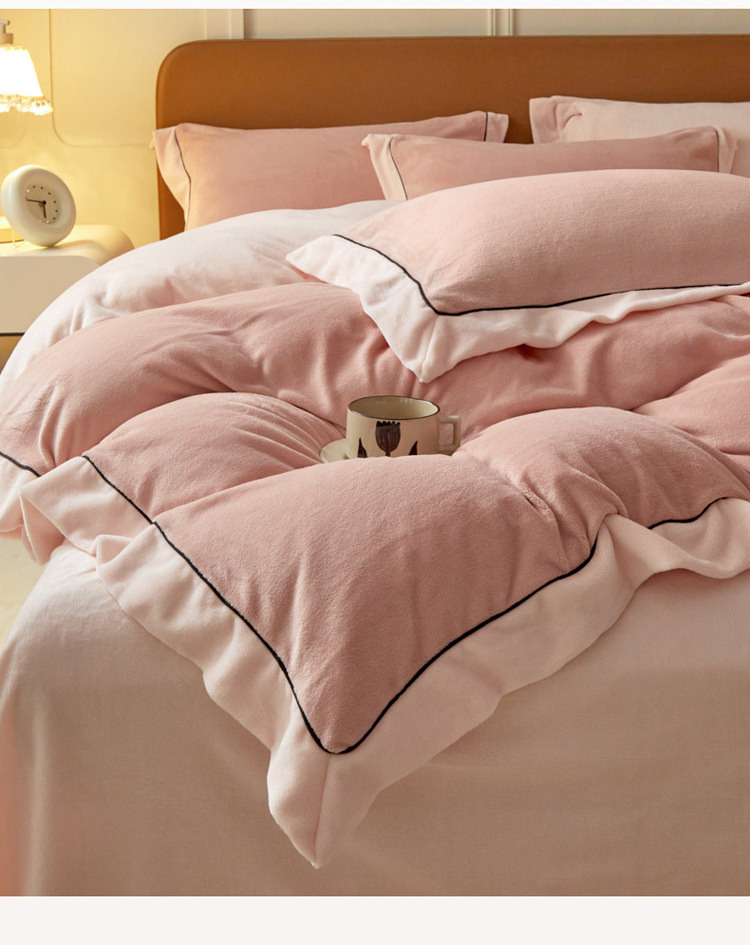 가을과 겨울 우유 벨벳 침대 4 피스 세트 단색 넓은 가장자리 코너 패딩 따뜻한 더블 퀼트 커버 시트 침구 도매