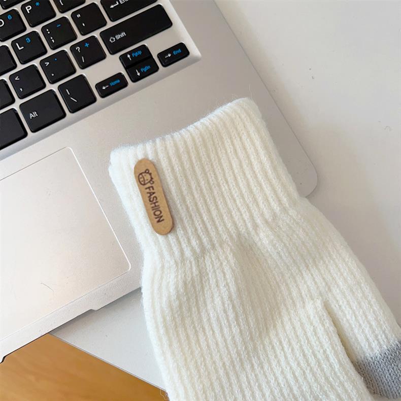 한국 스타일의 단색 패션 니트 따뜻한 장갑 여성의 겨울 방한 두꺼운 학생의 야외 승마 터치 스크린 풀 핑거스토어 가기