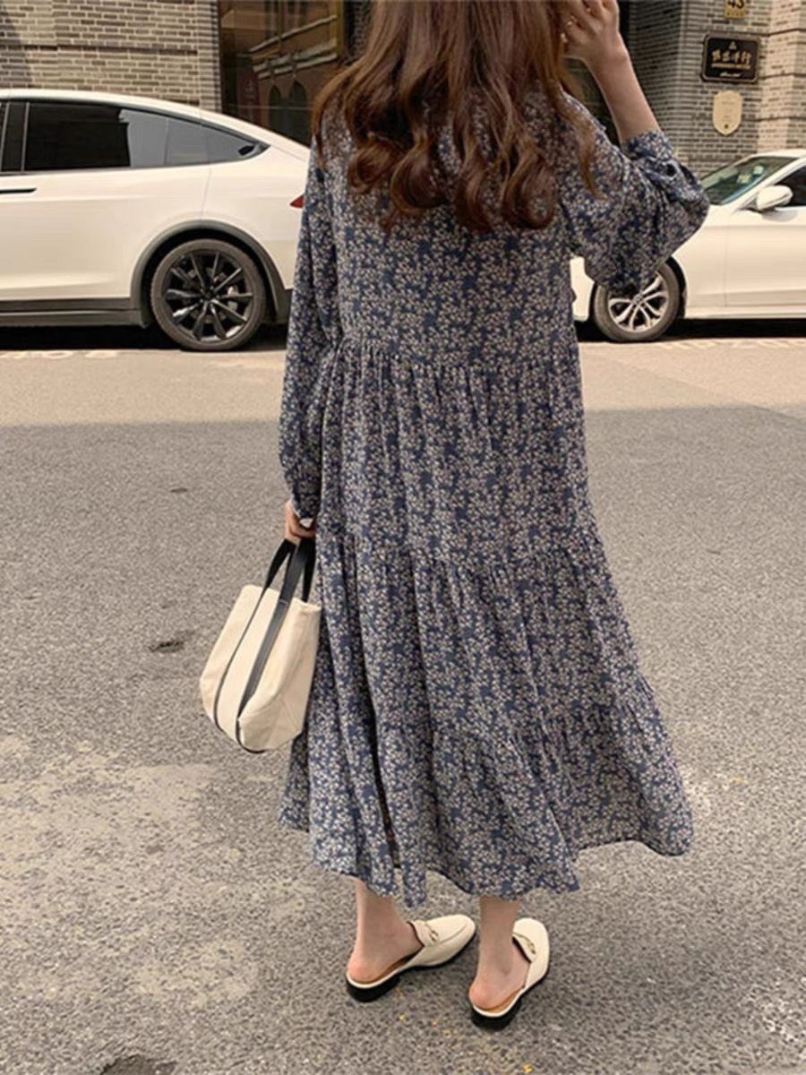 헵번스타일 프렌치 레트로 플래티코돈 원피스 여자 2025 년 신봄 가을 일본 한국인 느슨한 플러스 사이즈 원피스스토어 가기