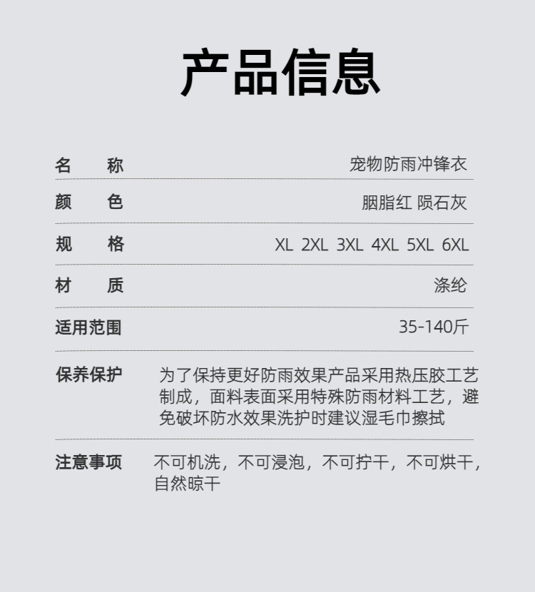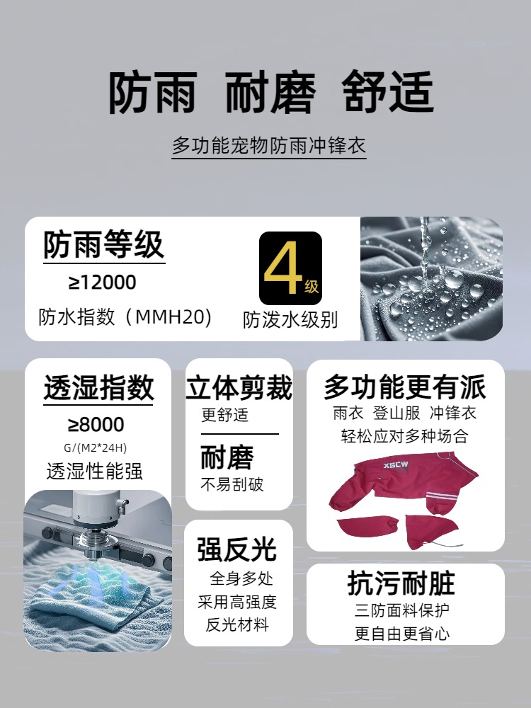 개 충전 옷 애완 동물 비옷 비옷 방비 새 방수 내마모성 정전기 방지 등산 세트 큰 개를위한 특수 코트