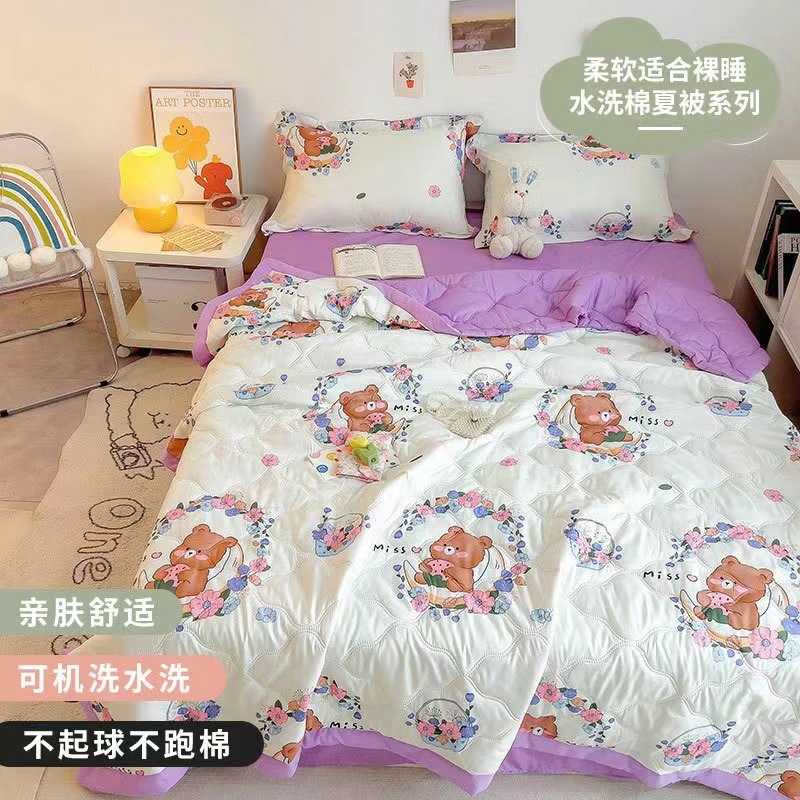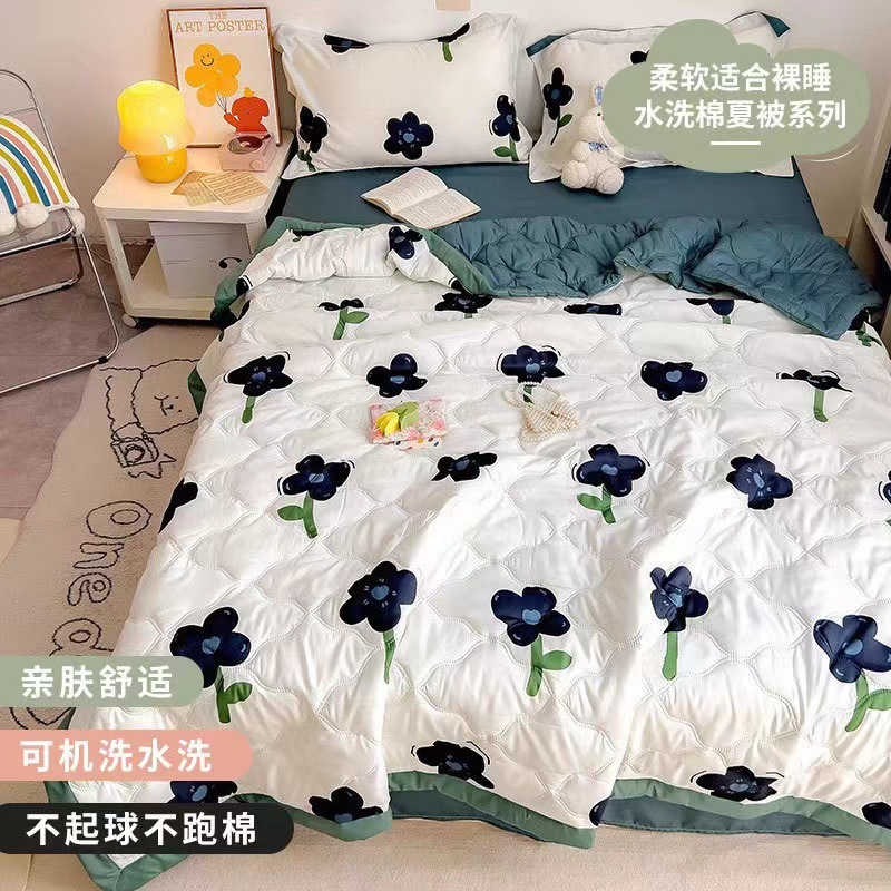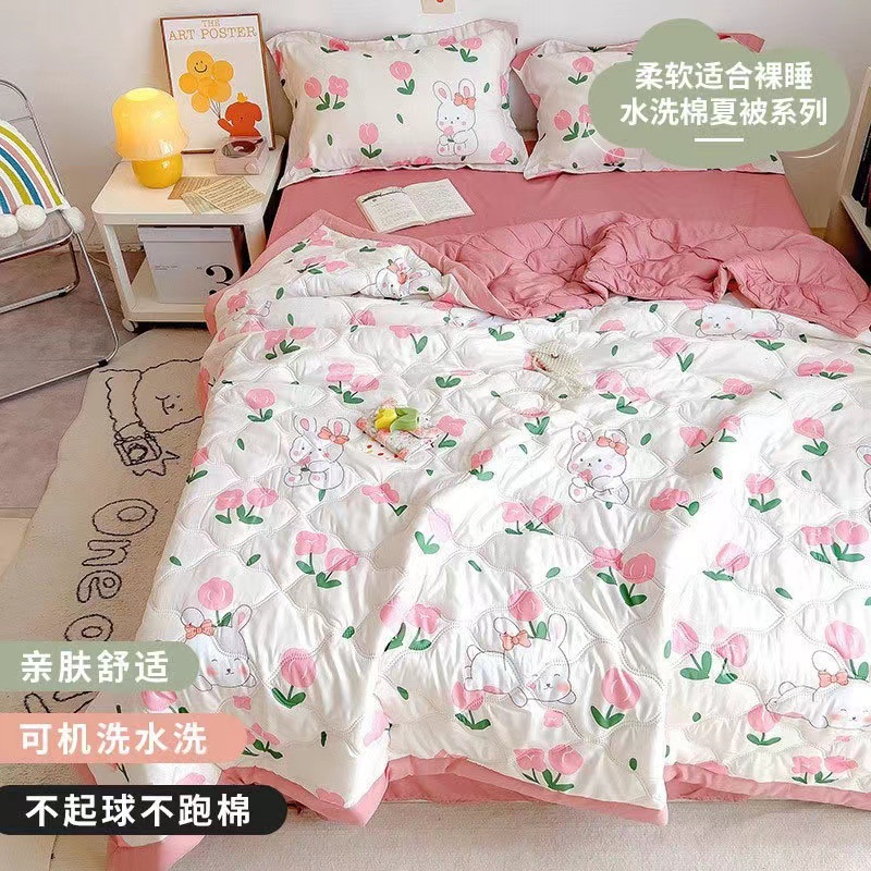 시원한 이불 세척 가능한 여름 에어컨 이불 레이스 없음 여름 시원한 이불 어린이 얇은 이불 기숙사 싱글 더블 얇은 점심 식사스토어 가기