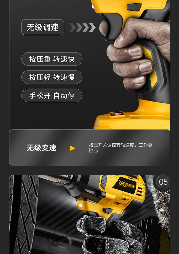 독일 브러시리스 전기 렌치 대형 토크 리튬 전기 충격 자동 수리 목재 발판 도구 강력한 공기 대포 손 전기 드릴