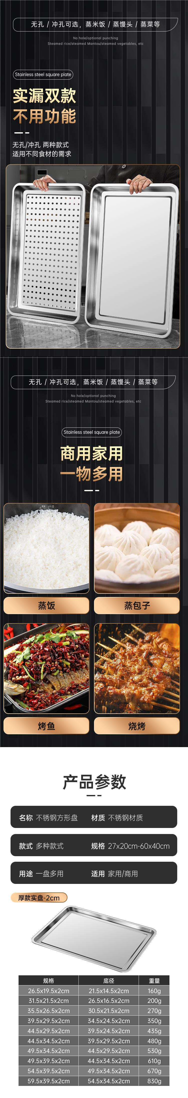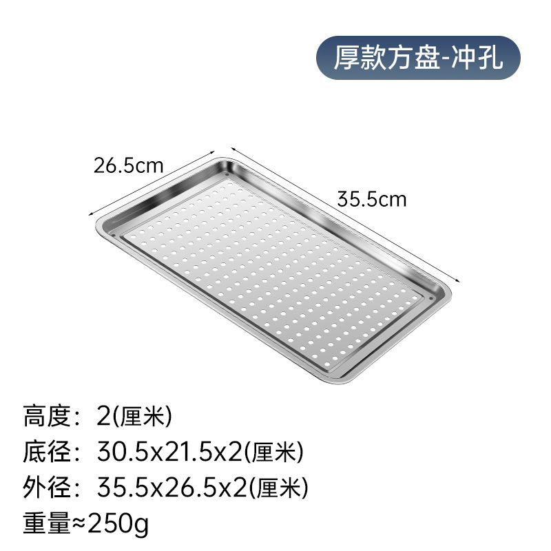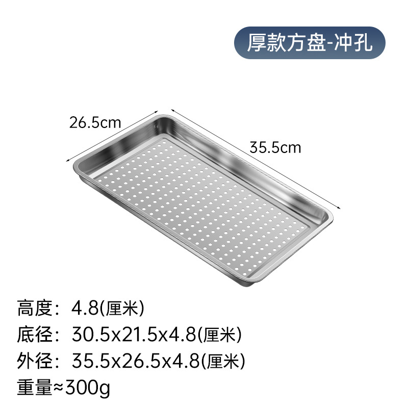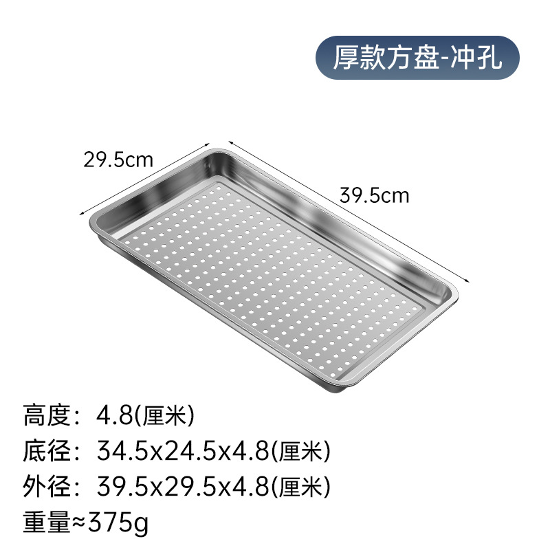 304 스테인레스 스틸 직사각형 트레이 스퀘어 플레이트 쌀 김이 판 쌀 김이 나는 캐비닛 스팀 박스 구멍 김이 팩 바베큐 플레이트 추가 두꺼운스토어 가기