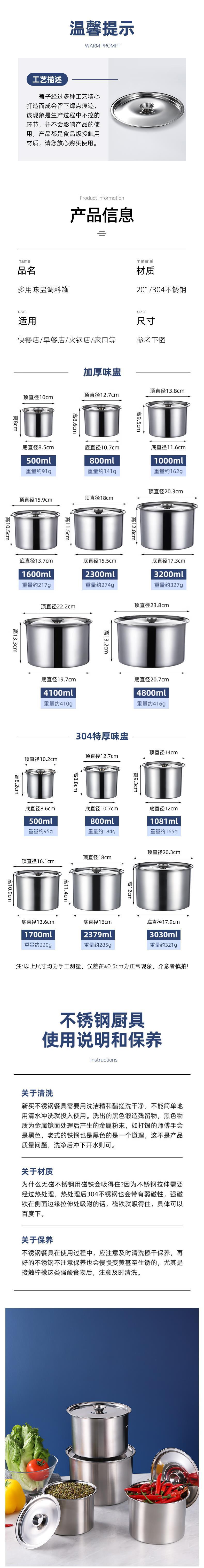 304 스테인레스 스틸 조미료 항아리 맛 컵 라드 항아리 주방 조미료 칠리 오일 조미료 상자 가구 뚜껑