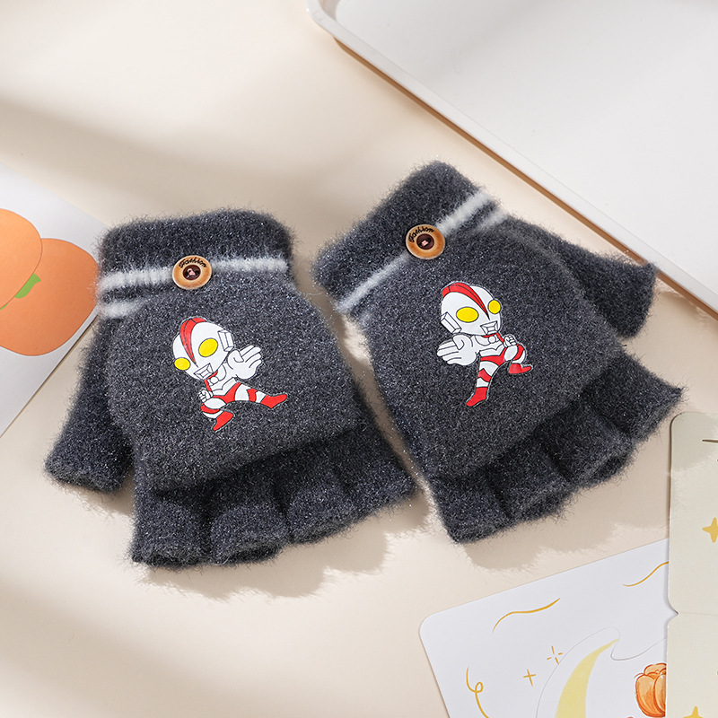 만화 닭 아기 따뜻한 장갑 가을과 겨울 방한 두꺼운 귀여운 소년과 소녀 다섯 손가락 반 손가락 플립 커버