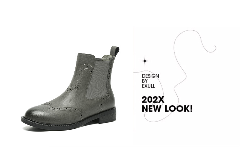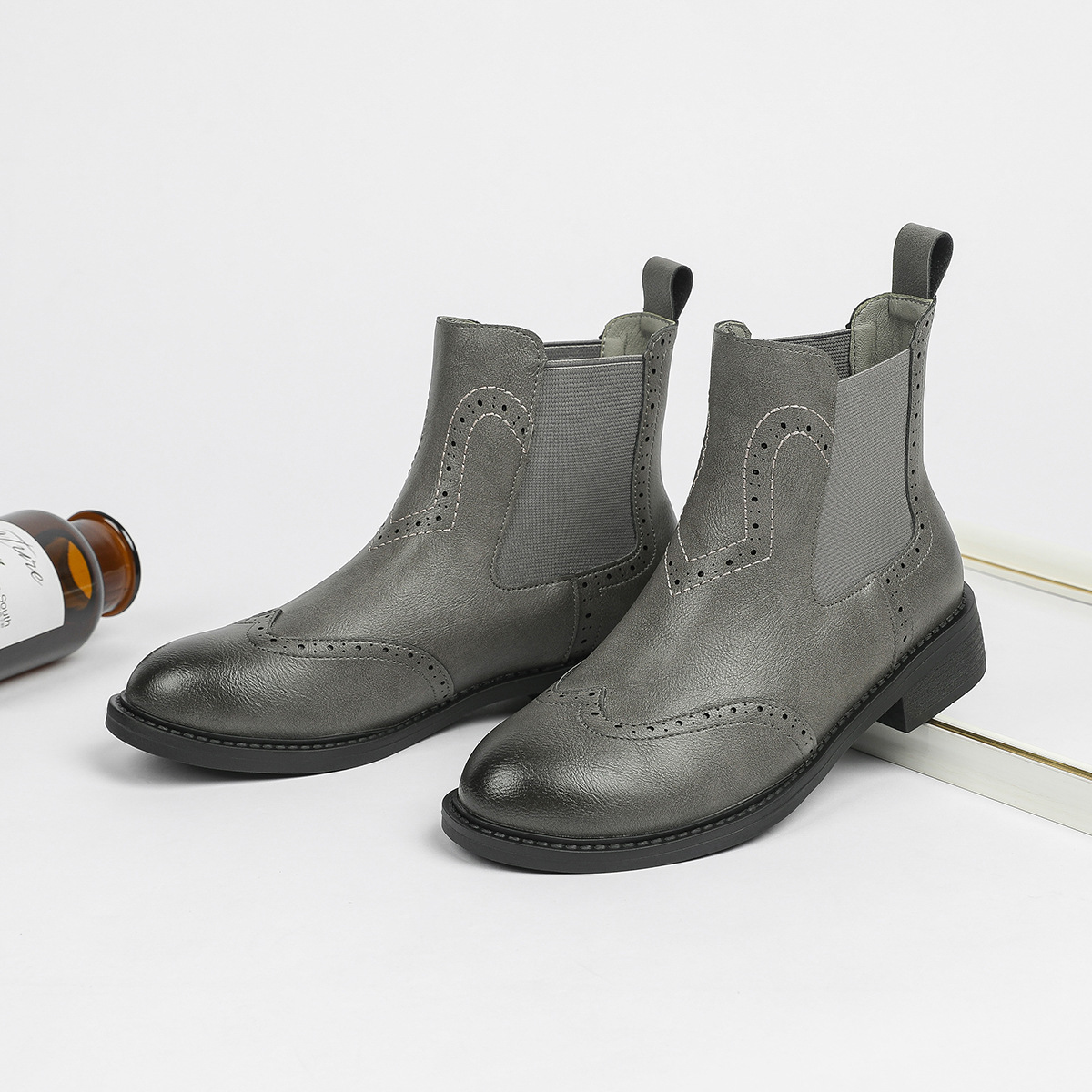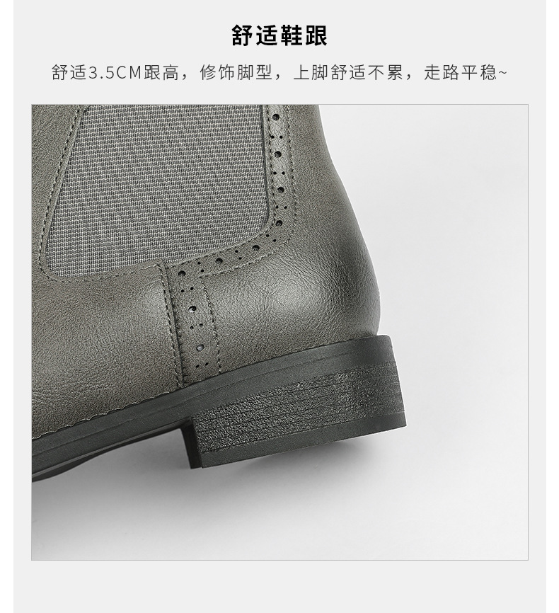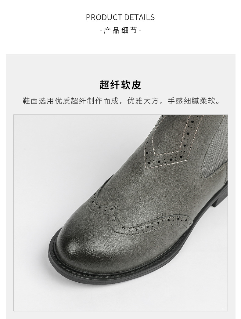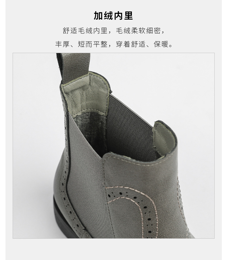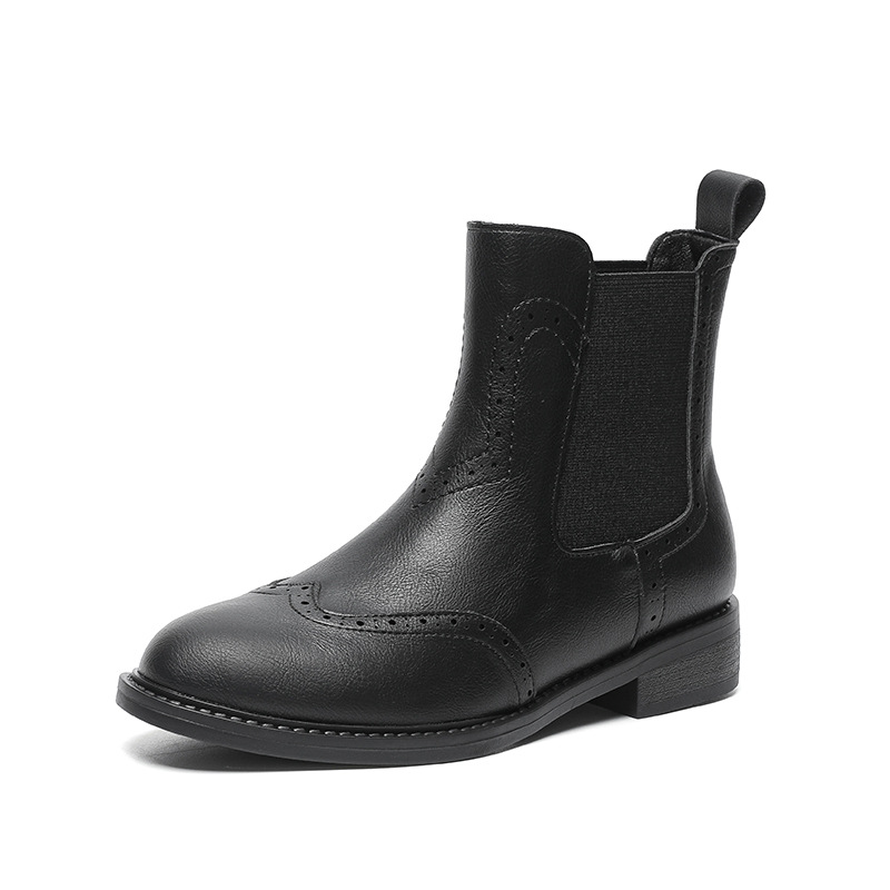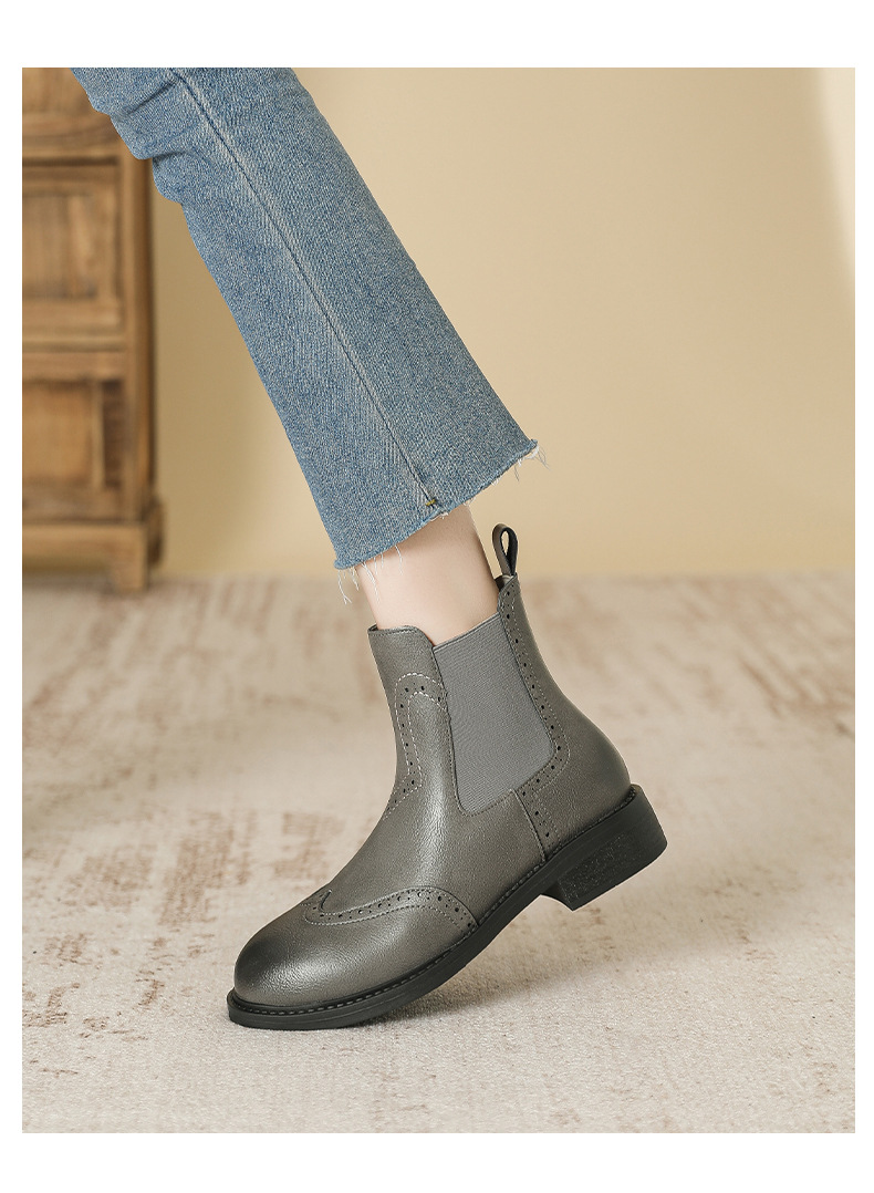 2024 새로운 라운드 발가락 첼시 부츠 여자 영국 브록 조각 짧은 부츠 트렌디 하이탑 신발 통근 소프트 Cowhide 부츠