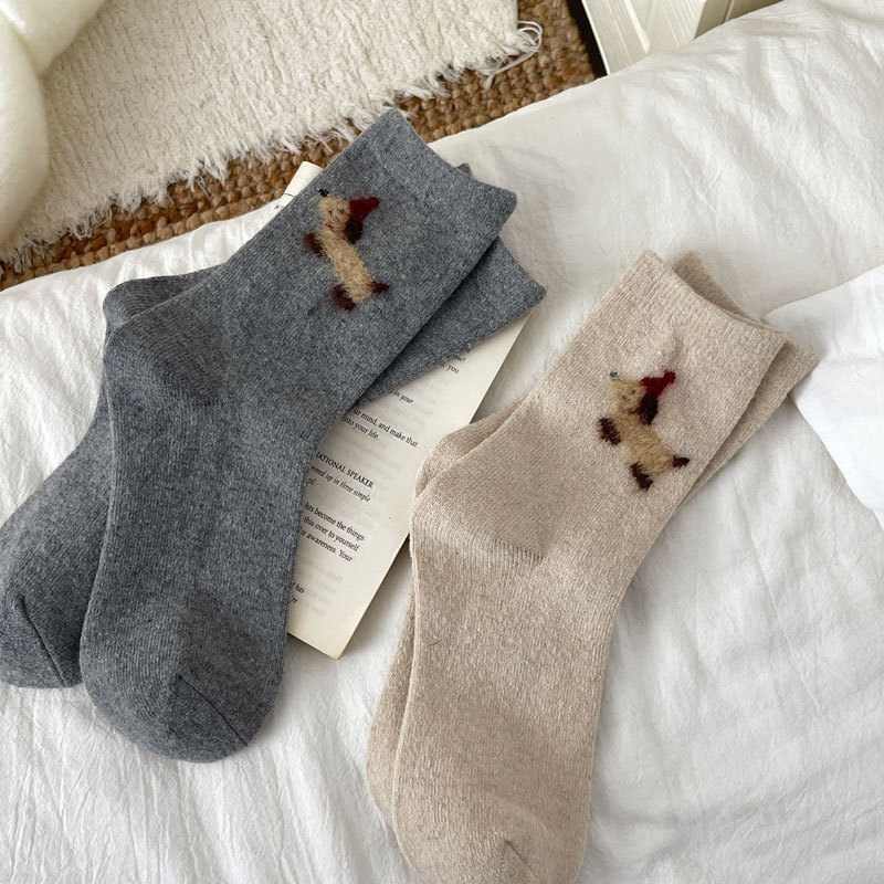 가을과 겨울 회색 잠금 만화 3 차원 따뜻한 양모 강아지 양말 여성의 Instagram 스타일 올 매치 미드 튜브 양말스토어 가기