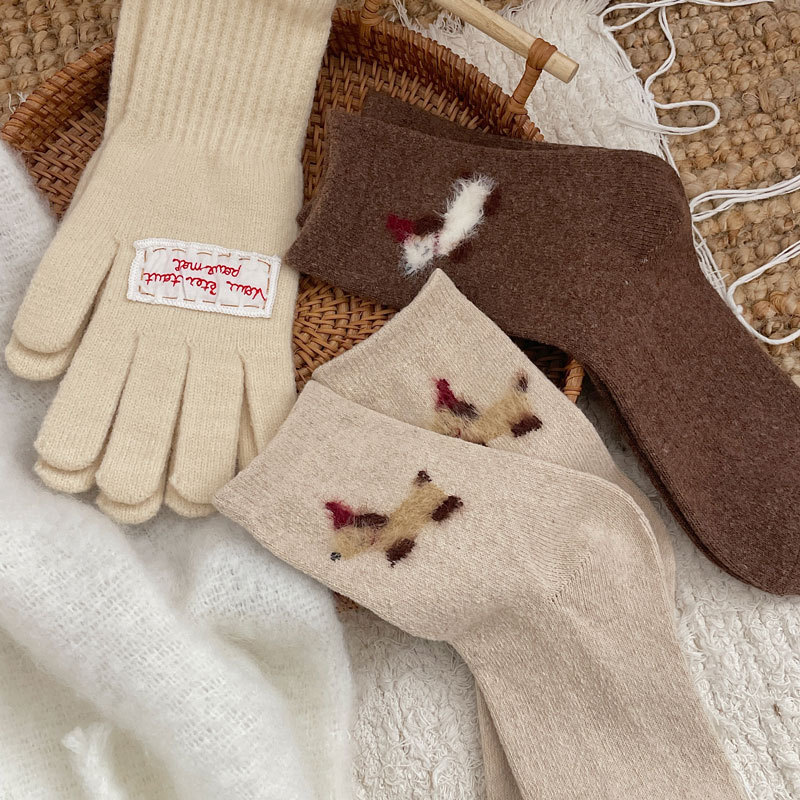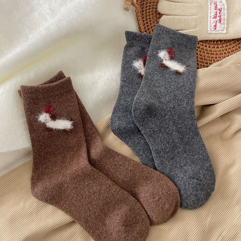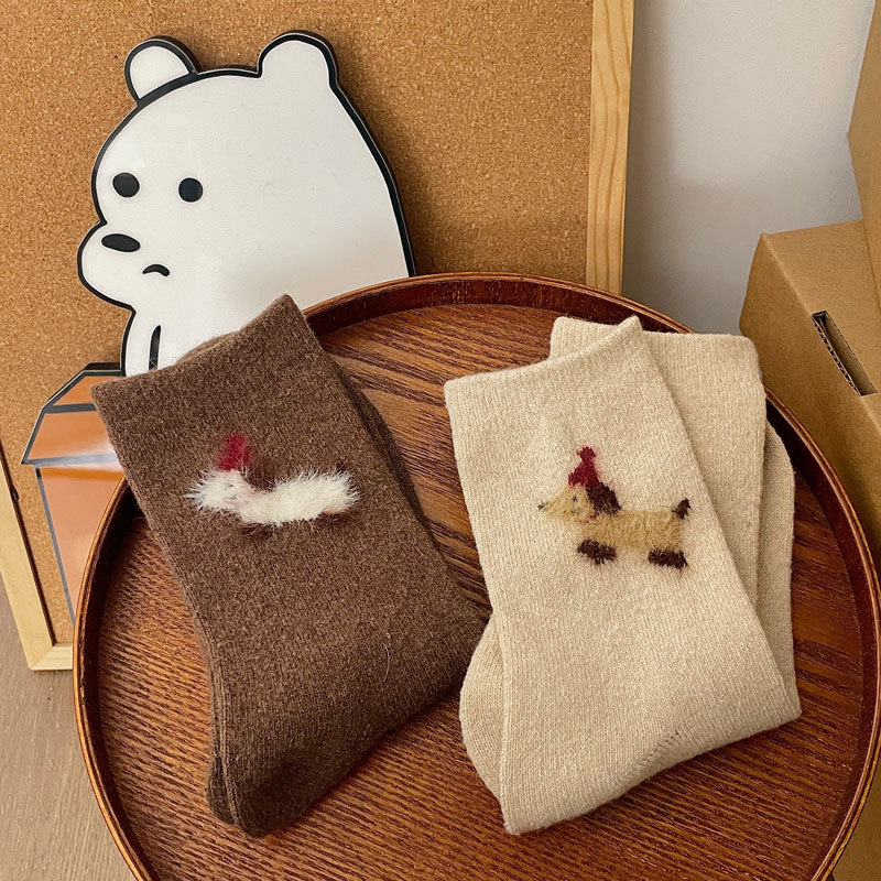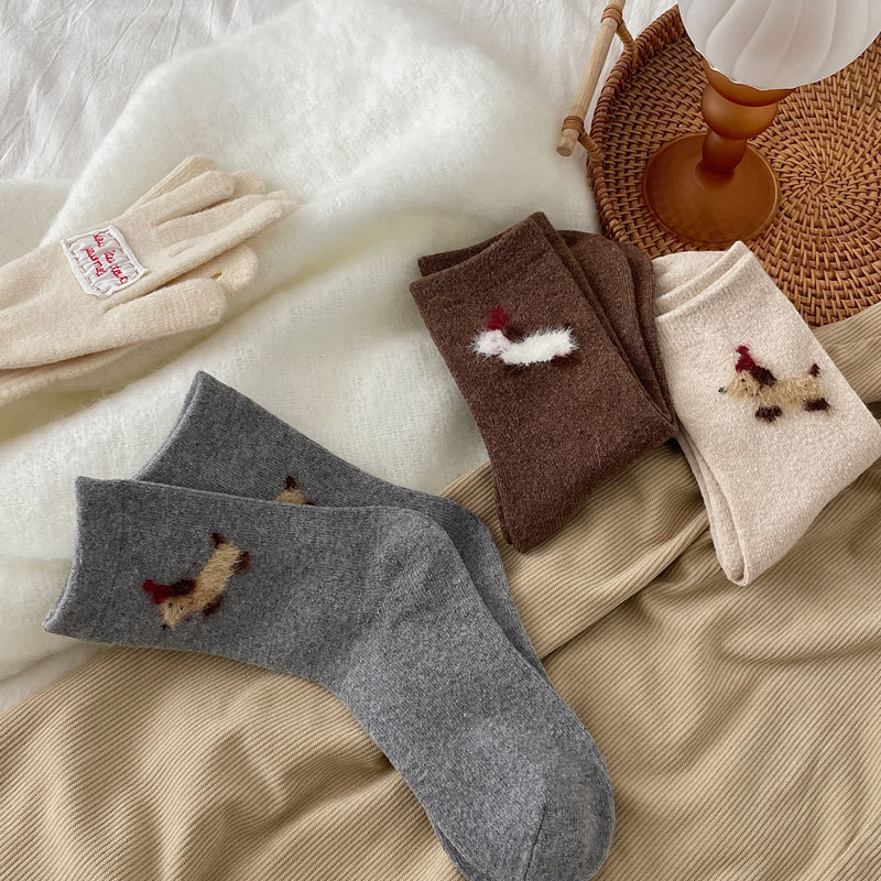 가을과 겨울 회색 잠금 만화 3 차원 따뜻한 양모 강아지 양말 여성의 Instagram 스타일 올 매치 미드 튜브 양말