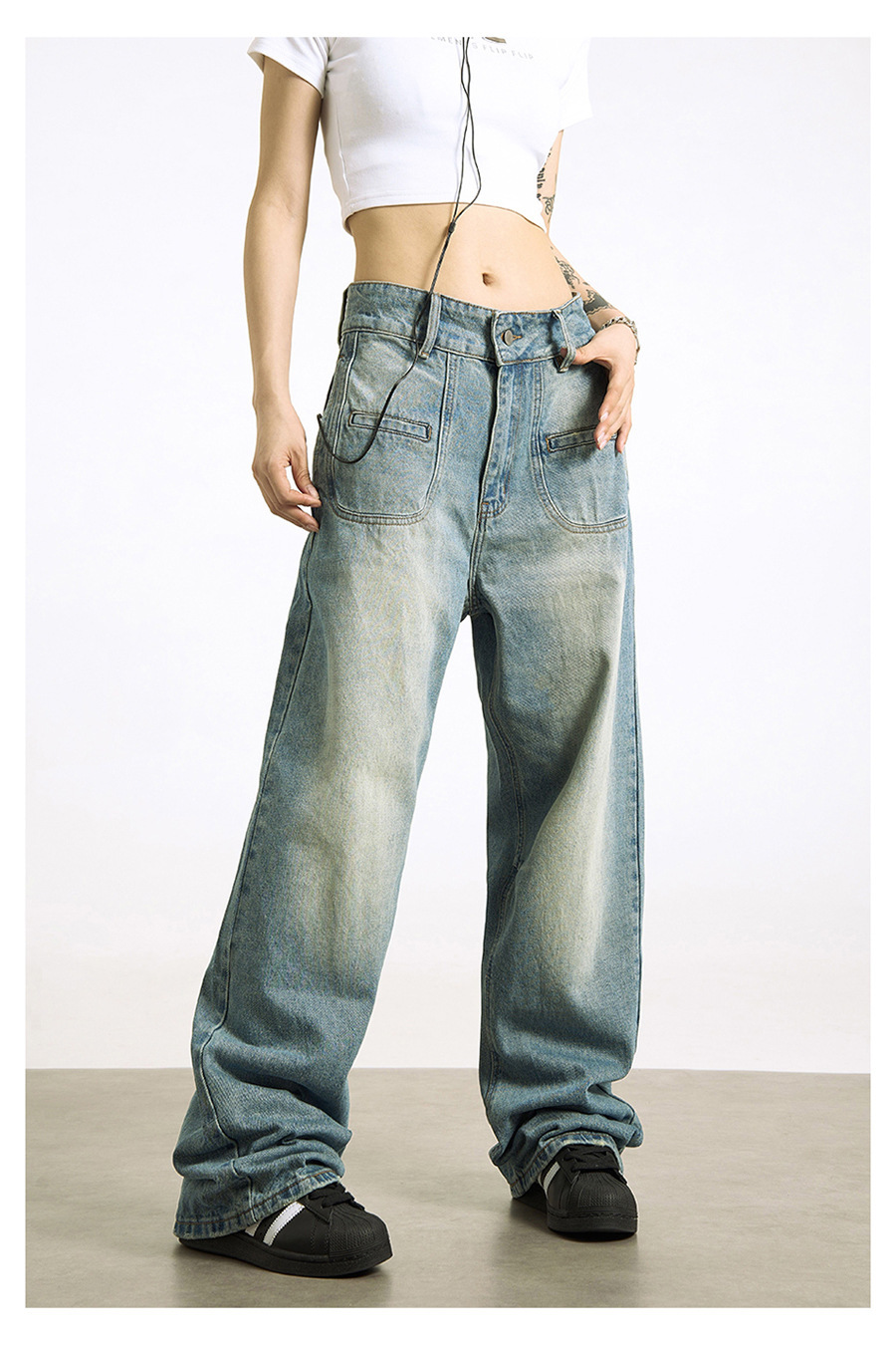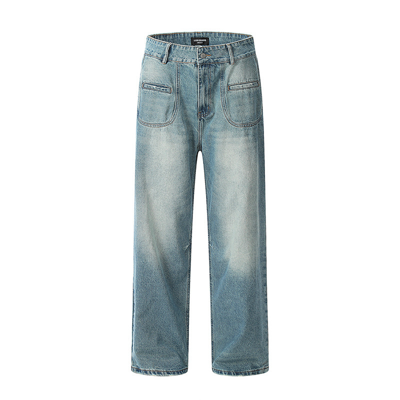 아메리칸 스타일 레트로 청바지 남자의 새로운 도착 느슨한 캐주얼 스트레이트 다리 넓은 다리 바지 2024 고급 센스 바지스토어 가기