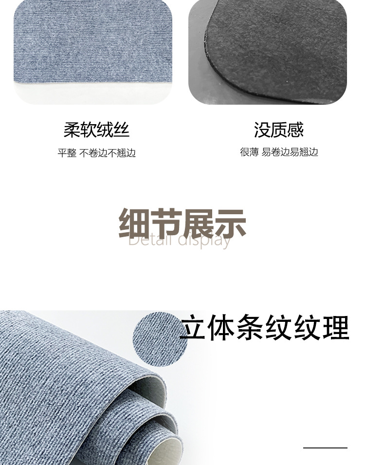 1.自粘背面带胶款优点是适合水泥地与不平整光滑的表面,缺点是不用的时候撕起来可能会有留胶,不能重复使用,背面是银色铝箔。
