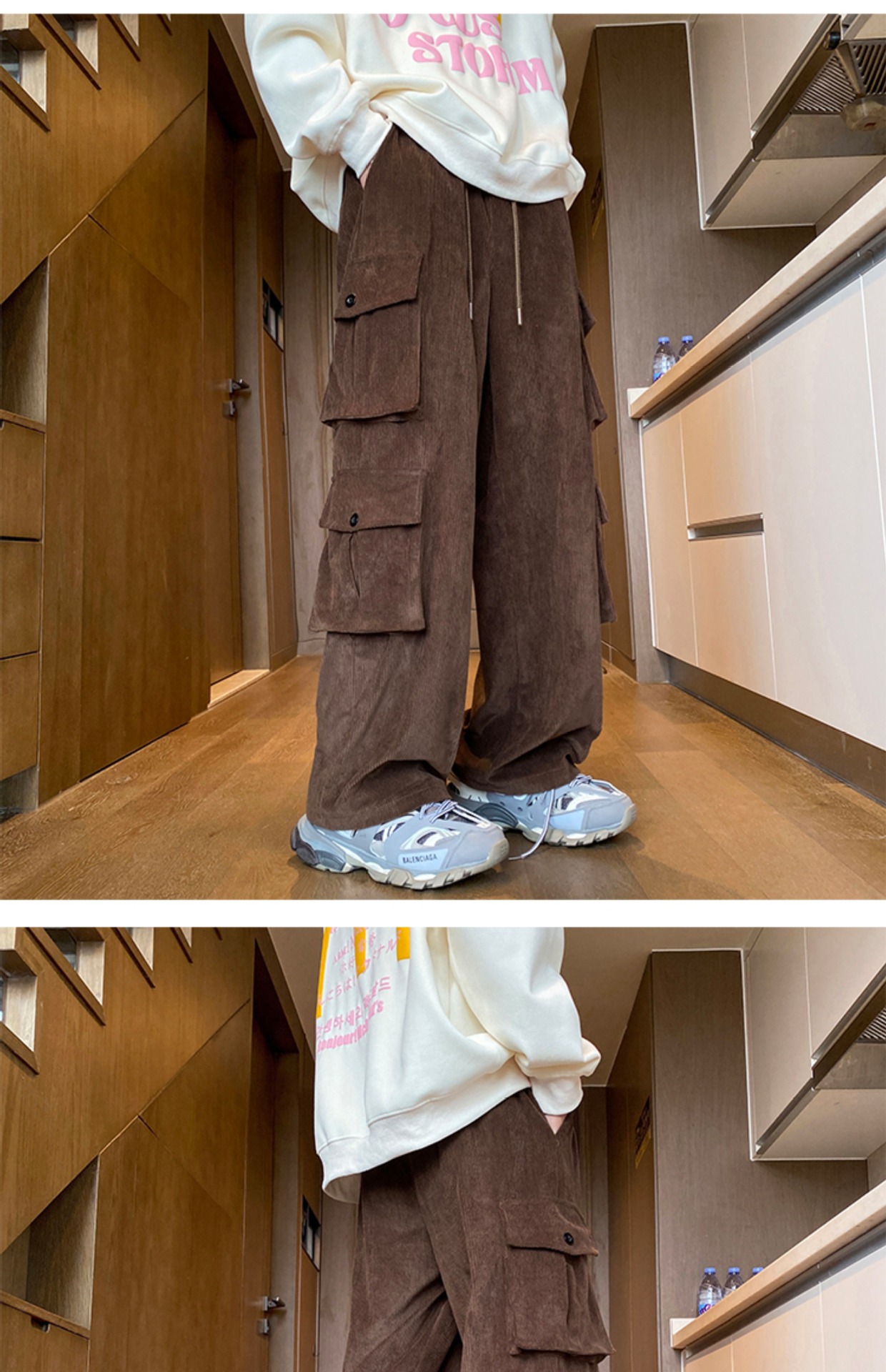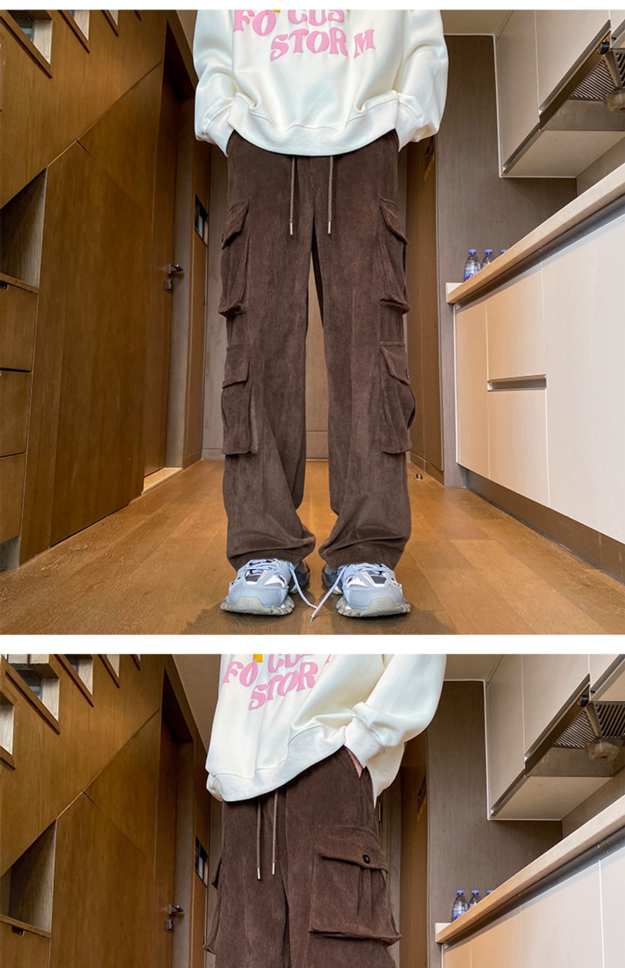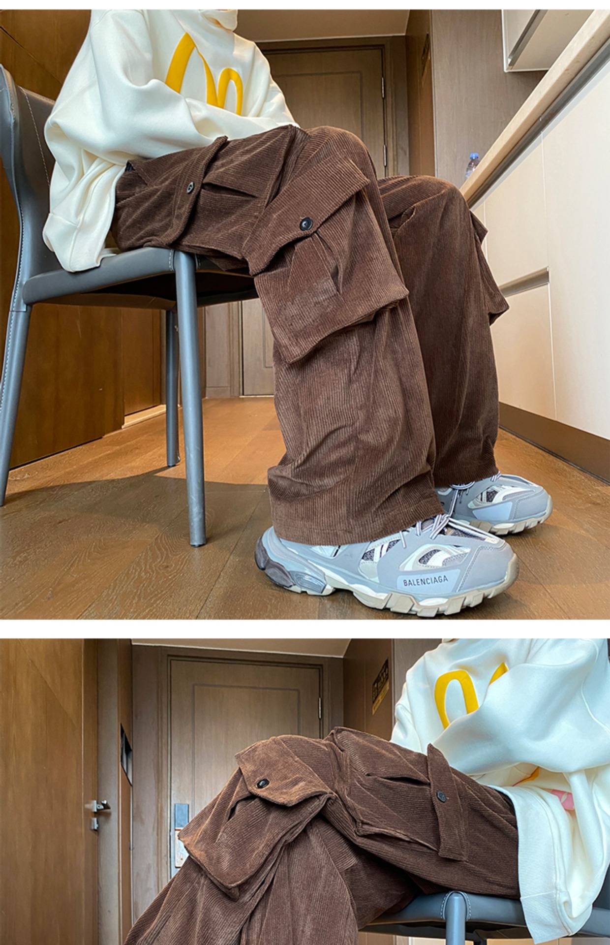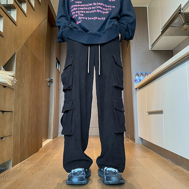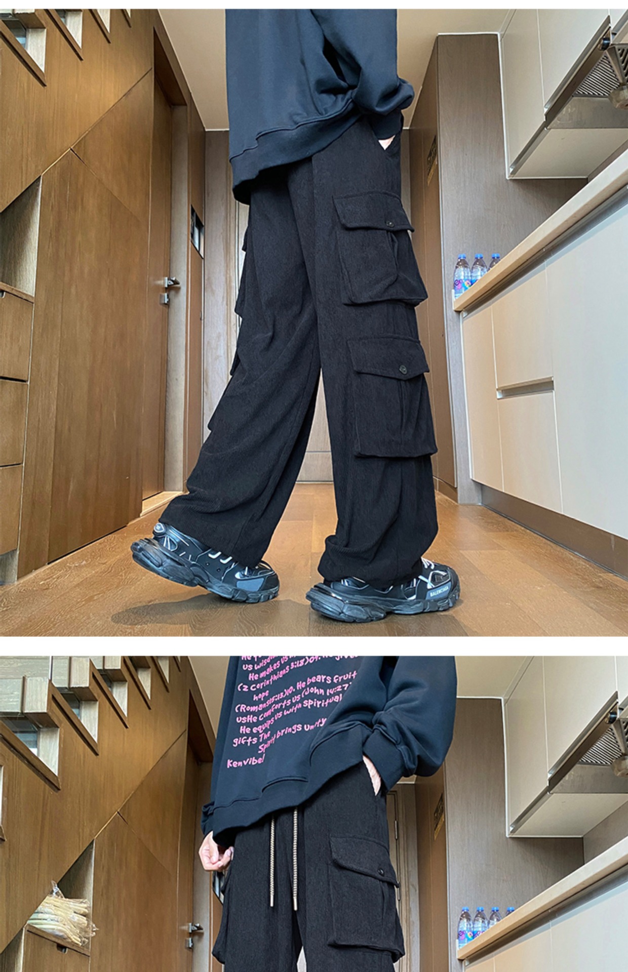 아메리칸 스타일 멀티 백 작업 바지 남성 봄과 가을 패션 브랜드 디자인 센스 와이드 다리 바지 레트로 느슨한 올매치 스트레이트 바지스토어 가기