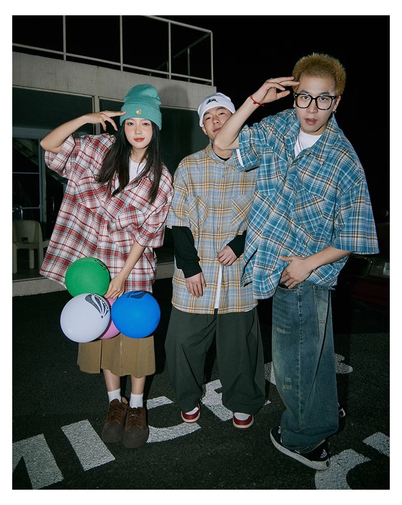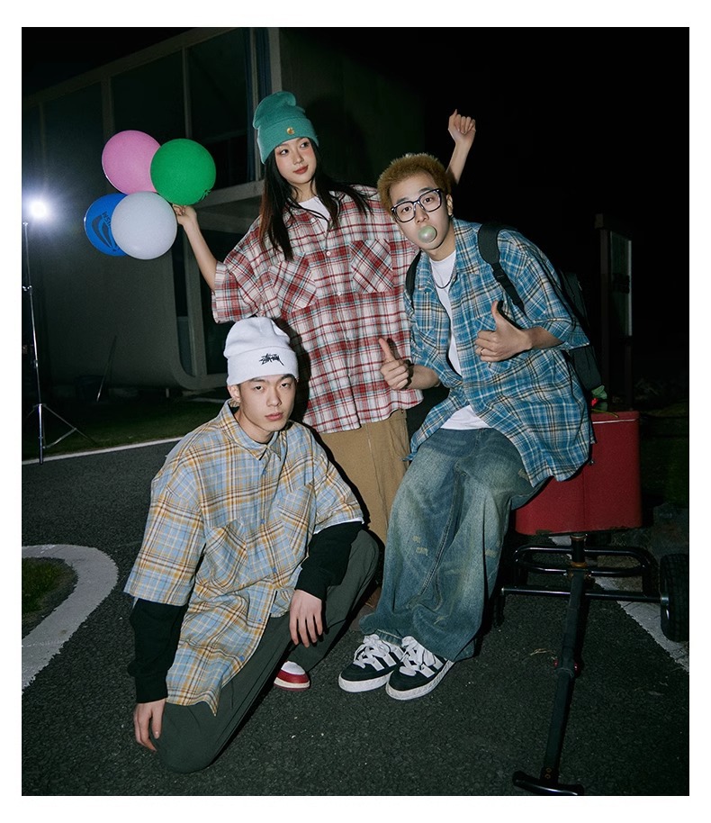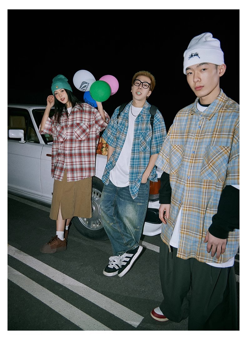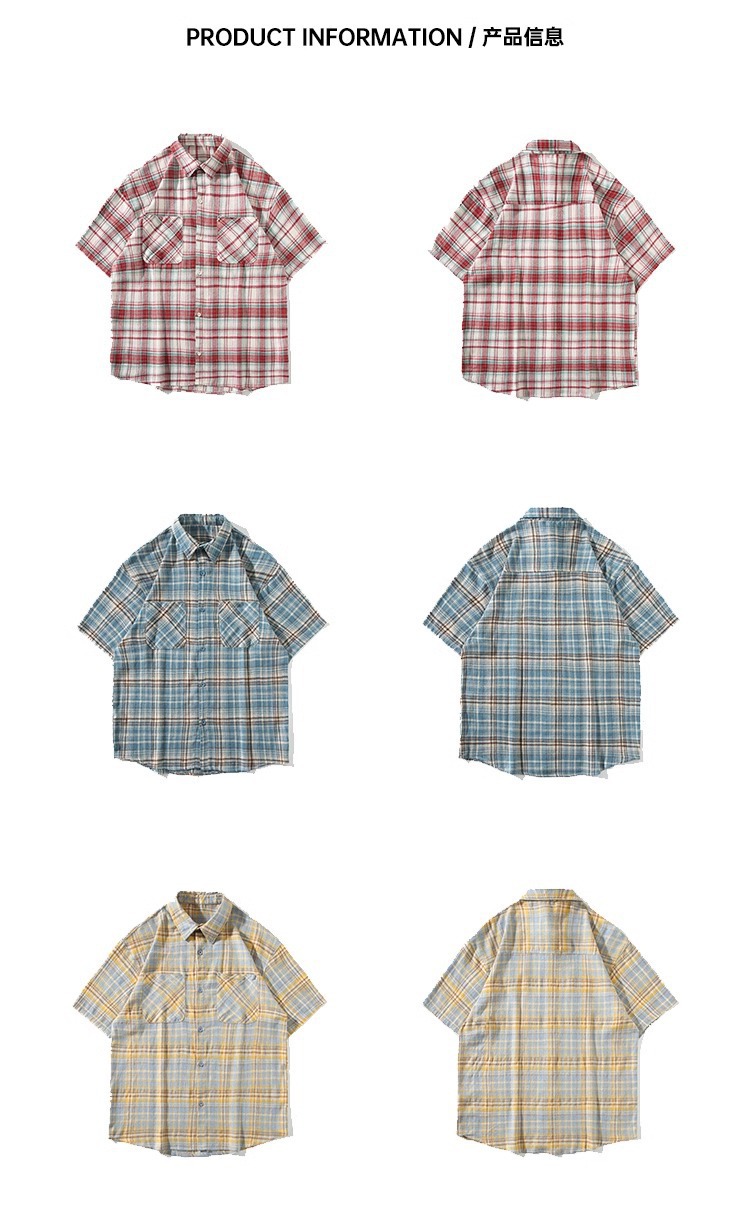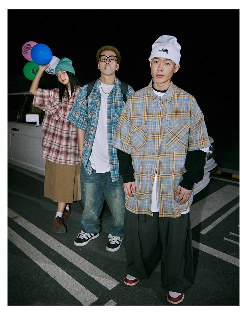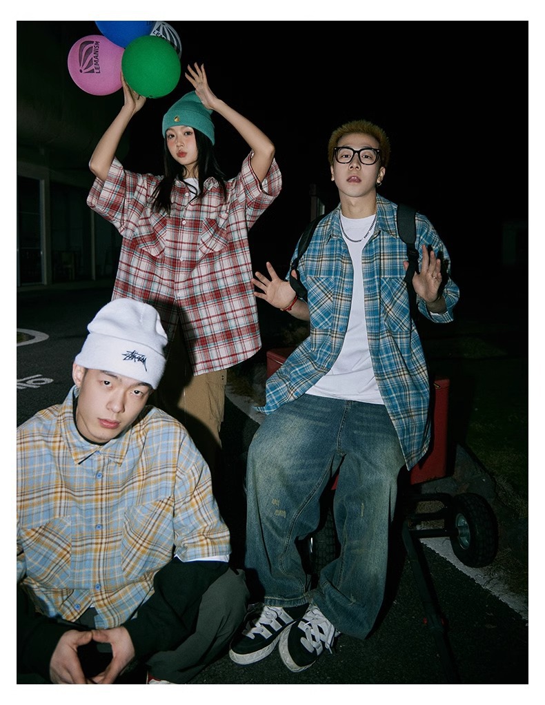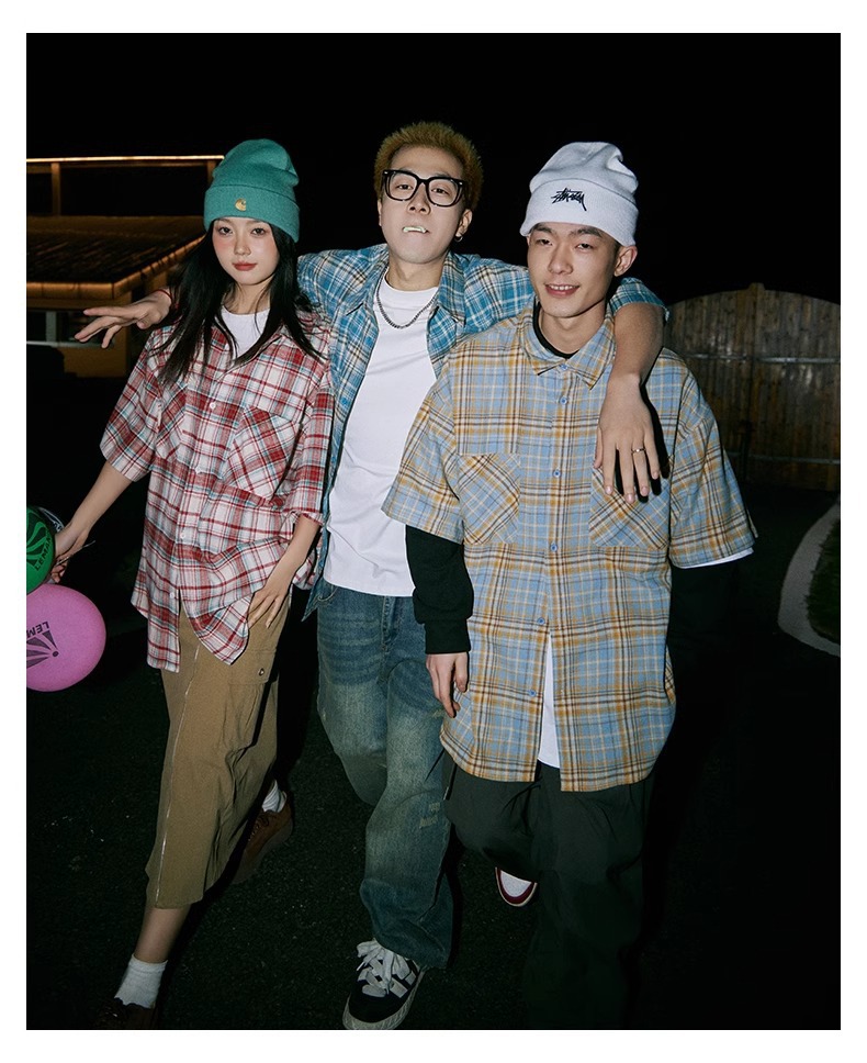 일본 틈새 격자 반팔 셔츠 남자 여름 새로운 느슨한 유행 브랜드 올 매치 셔츠 커플 코트 탑스토어 가기