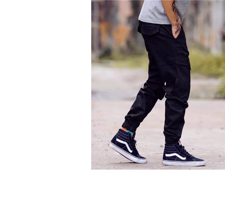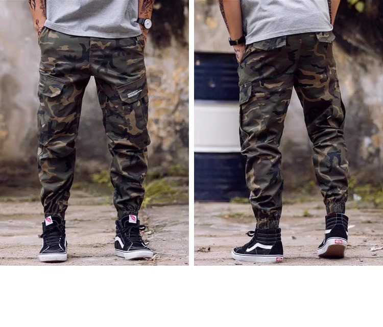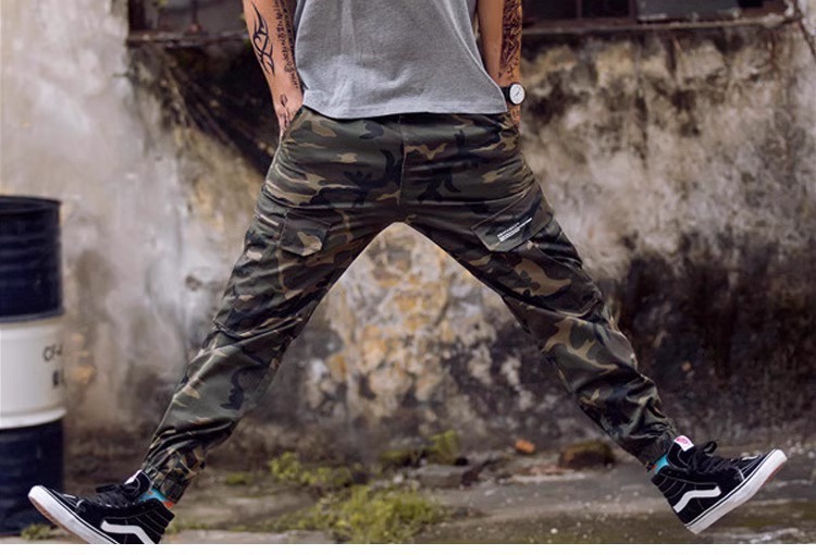 하이 스트리트 스타일 발 연결 다리 위장 조깅 폴드 기능성 멀티 포켓 발 바지 유행 남성 슬림 핏 다리 캐주얼 바지스토어 가기