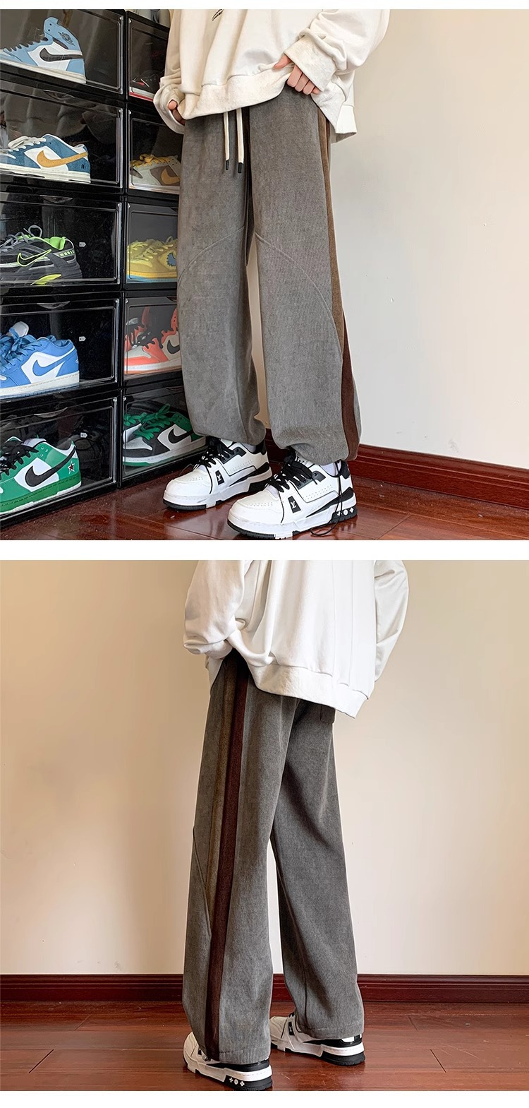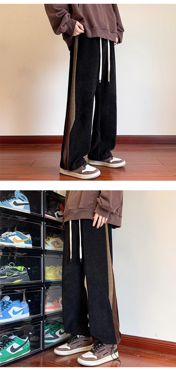 한국식 고급 기모 두꺼운 캐주얼 바지 남자 겨울 새로운 패션 브랜드 스트레이트 바지 느슨한 스포츠 긴 땀 바지