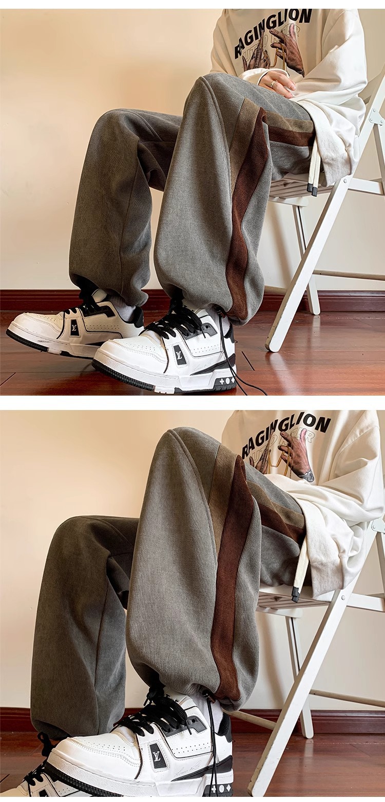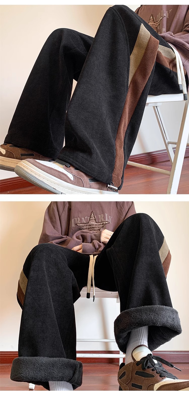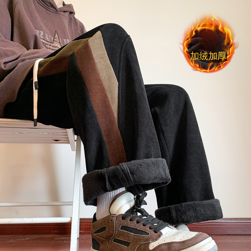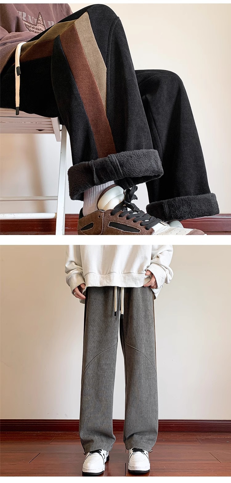 한국식 고급 기모 두꺼운 캐주얼 바지 남자 겨울 새로운 패션 브랜드 스트레이트 바지 느슨한 스포츠 긴 땀 바지스토어 가기